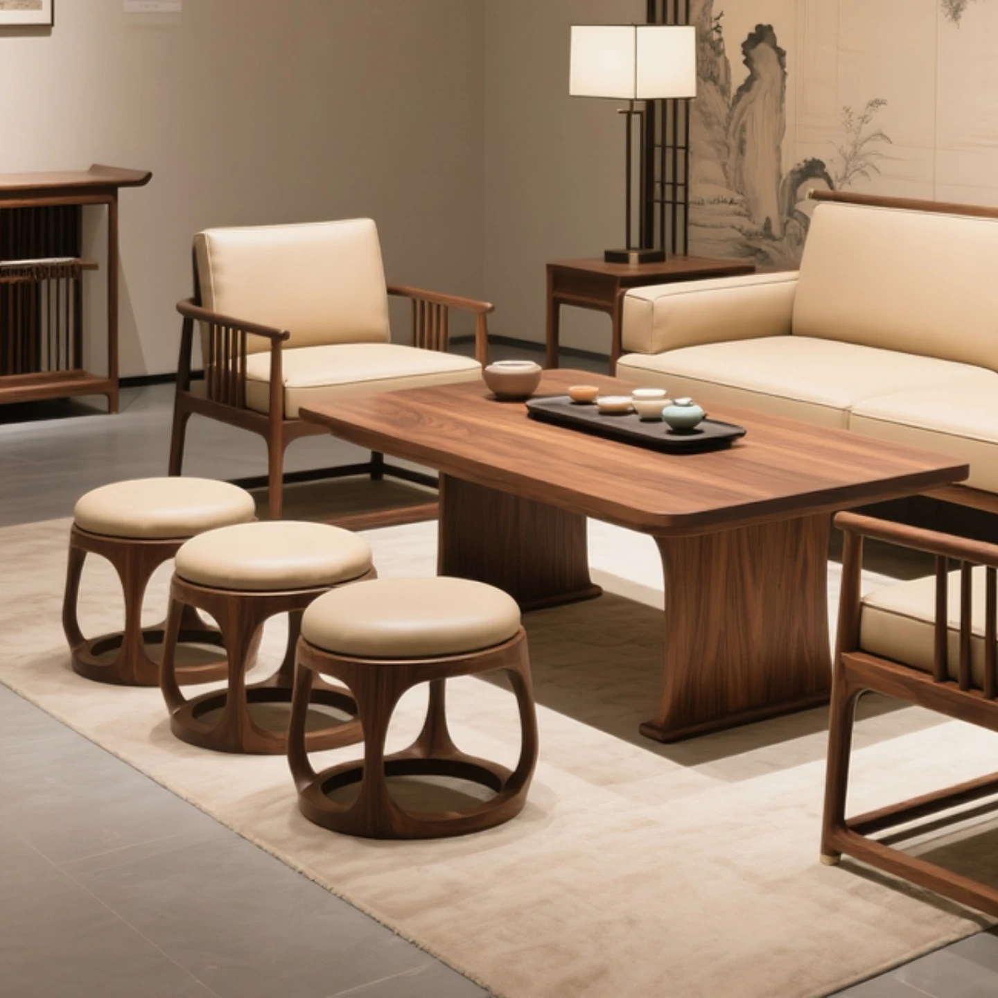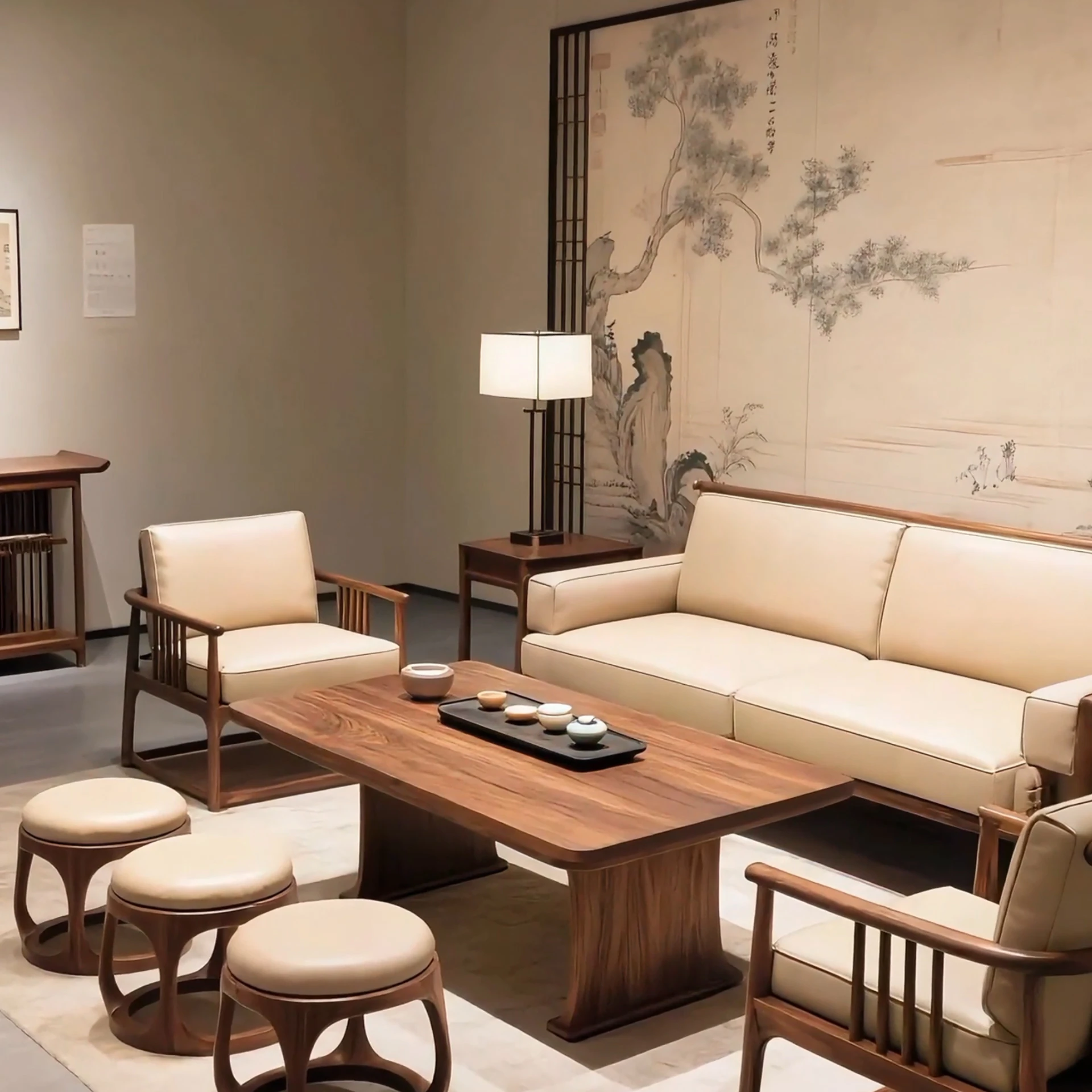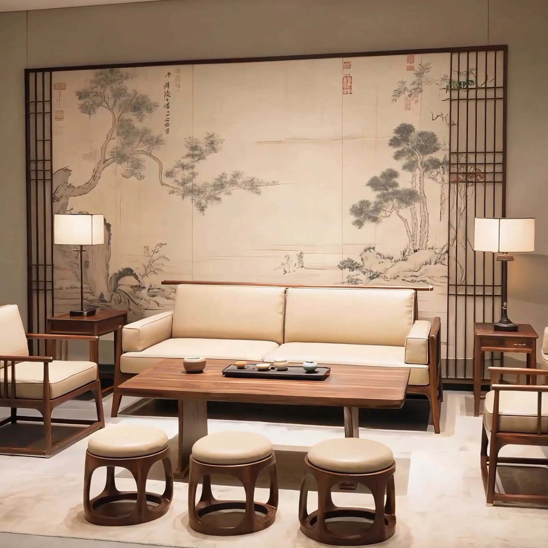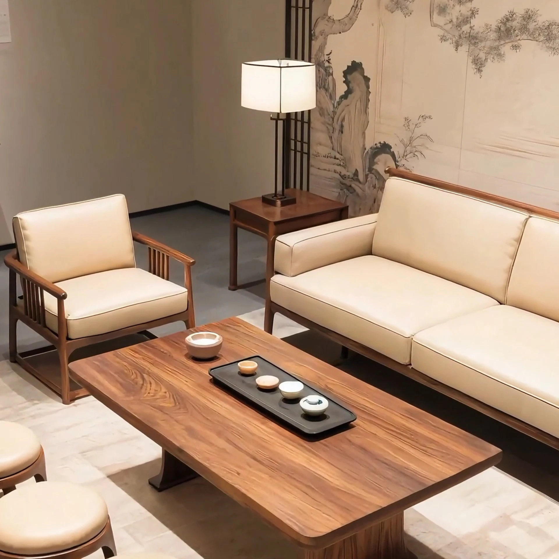 新中式デザインの本革ソファセット - モダンでラグジュアリーな北米産ウォールナットを使用した、快適なリビング空間を演出する宋氏スタイルのソファ。あなたの居住空間に洗練された美しさをプラス!