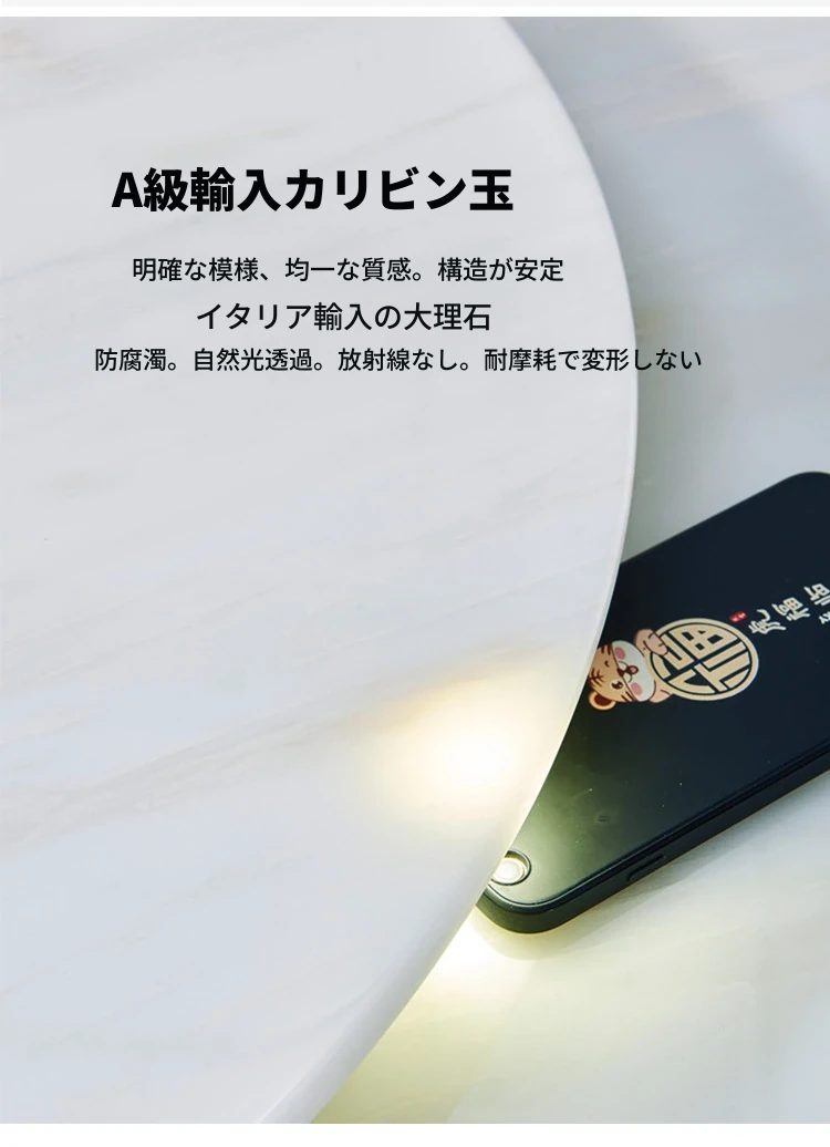 軽やかな高級感!天然ホワイトアイス玉と大理石のコンビネーション、モダンでシンプルなデザインのラウンドダイニングテーブルとチェア。家族や友人との素敵なひとときを演出する、実用的でスタイリッシュな円形テーブルです。