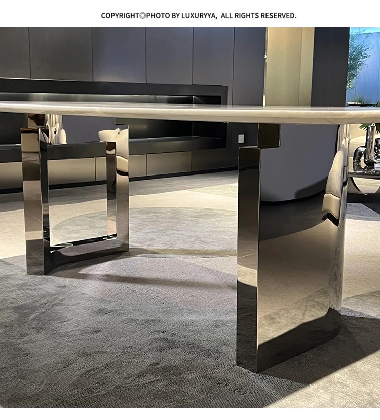 イタリアンラグジュアリー大理石ダイニングテーブル&チェアセット|現代的で高級感あふれる楕円形テーブル|別荘や小型住宅にもぴったりな家具!