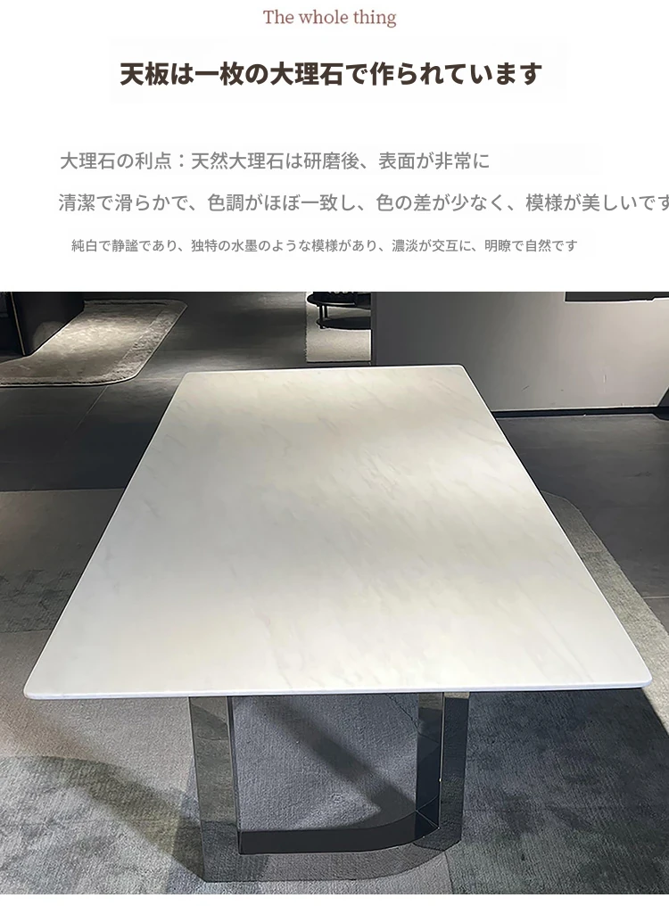 モダンデザインの大理石テーブルとシンプルな椅子のセット | スタイリッシュなリビング&ダイニングに最適!小さなスペースにもぴったりな長方形のデザインで、現代的な生活空間を演出します。