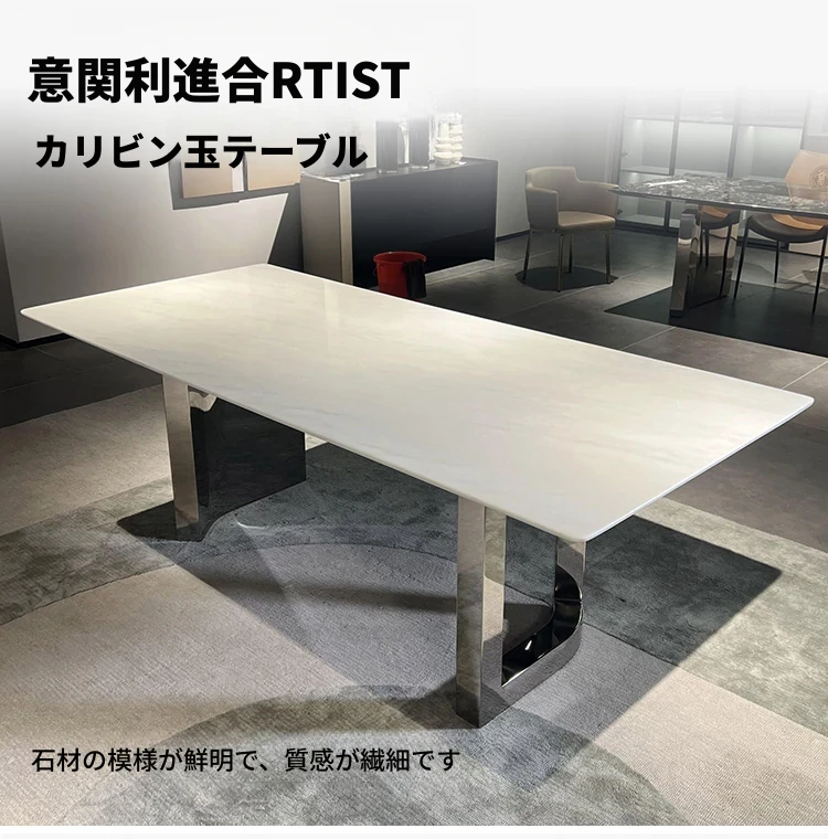 イタリアンライトラグジュアリー光沢岩板ダイニングテーブル シンプルモダンリビング用 家庭用食事テーブル チェアセット 2025年新作!おしゃれで洗練されたデザインで、食卓を特別な空間に演出します。