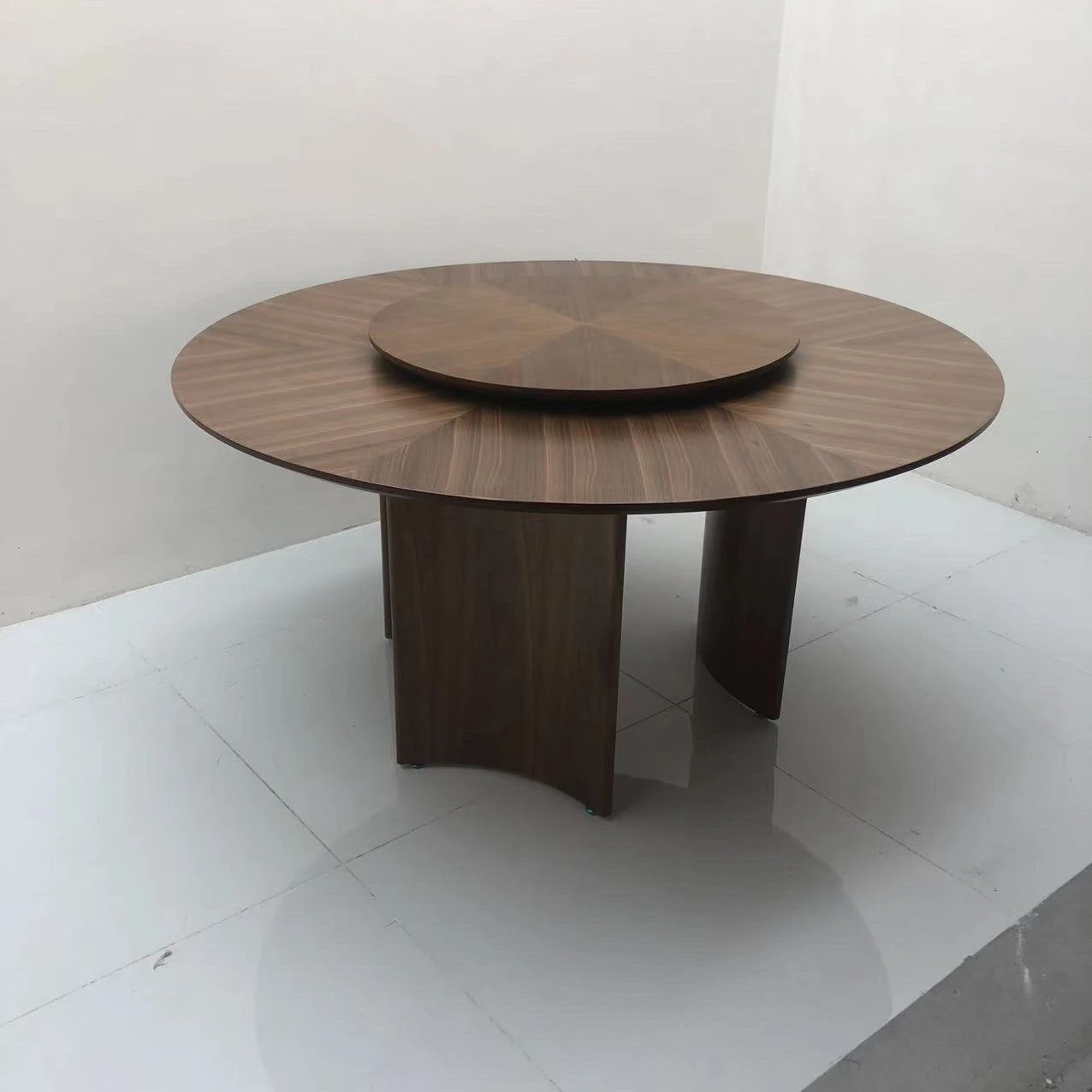 XDD70.87in walnut veneer parquet round table + Rock plate turntable