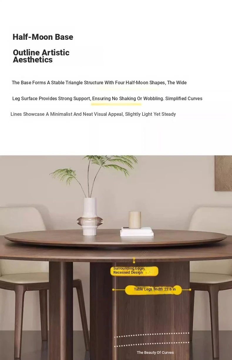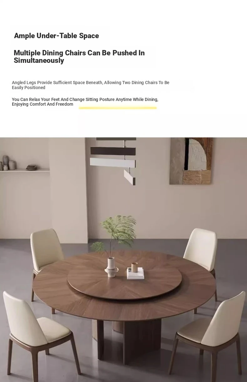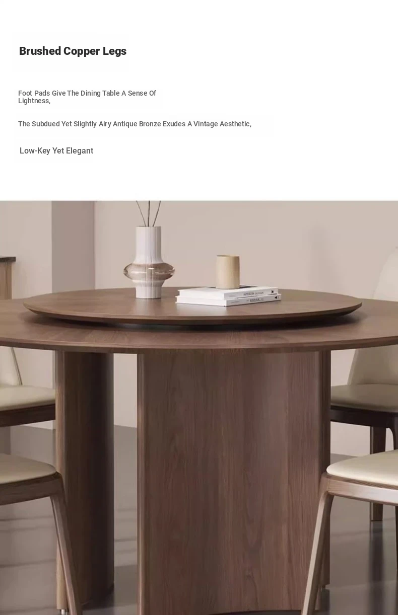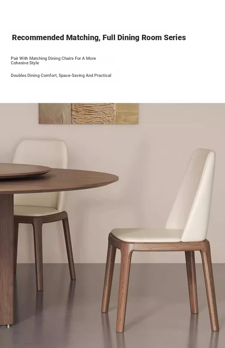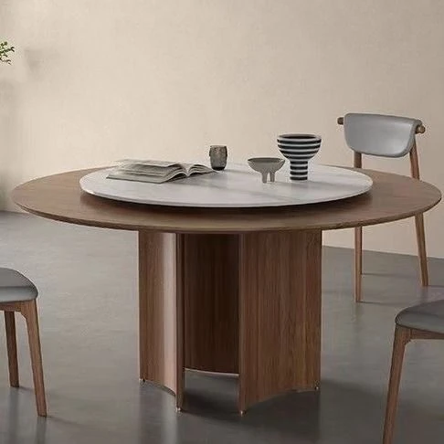 Modern Minimalist Round Dining Table in Walnut Finish - Light Luxury Solid Wood with Rotating Slate Top, Perfect for Small Spaces