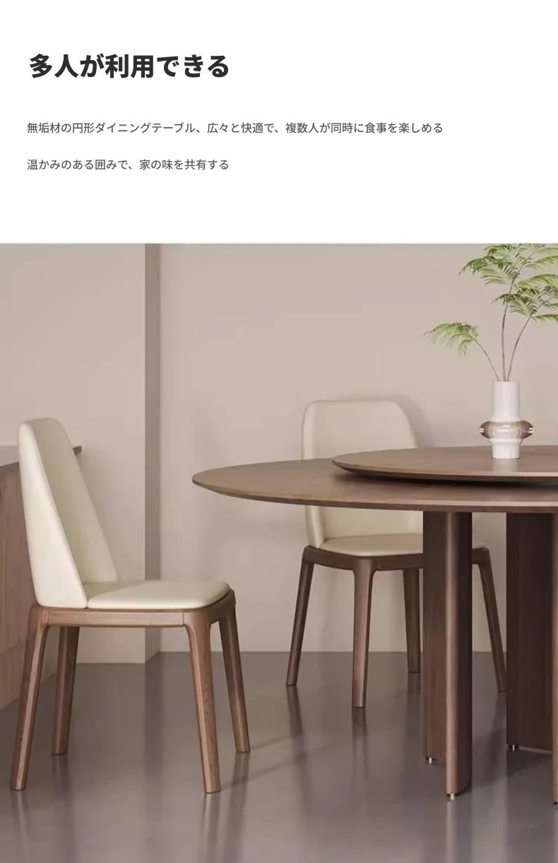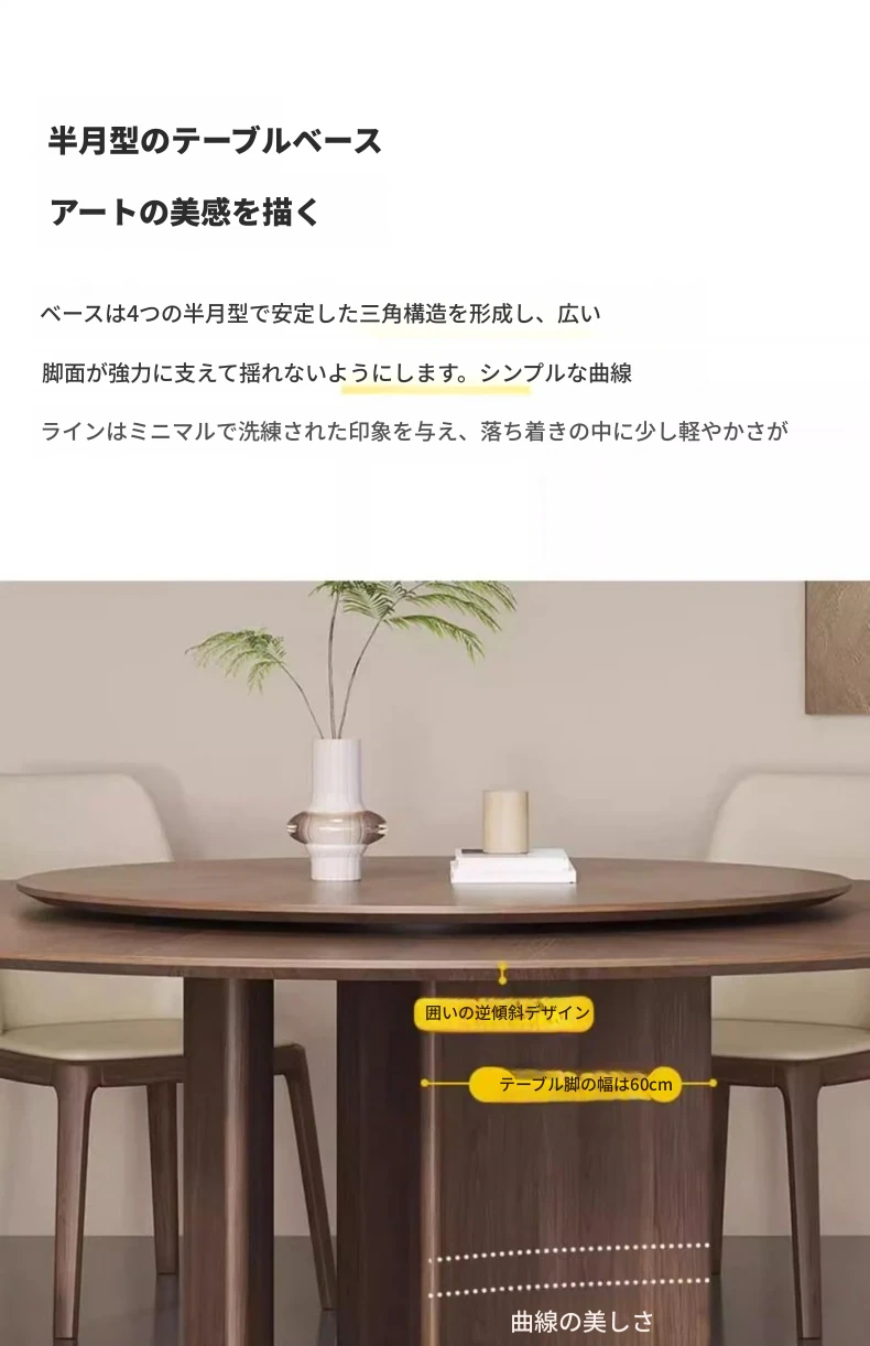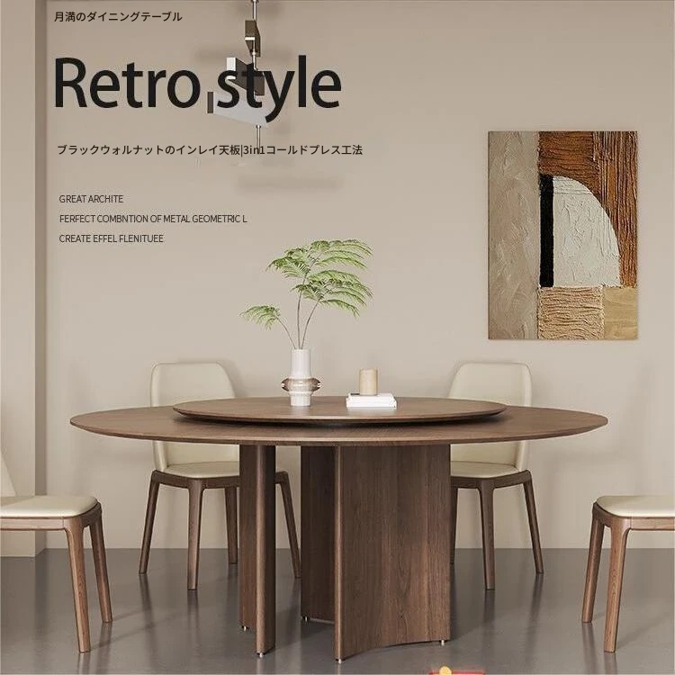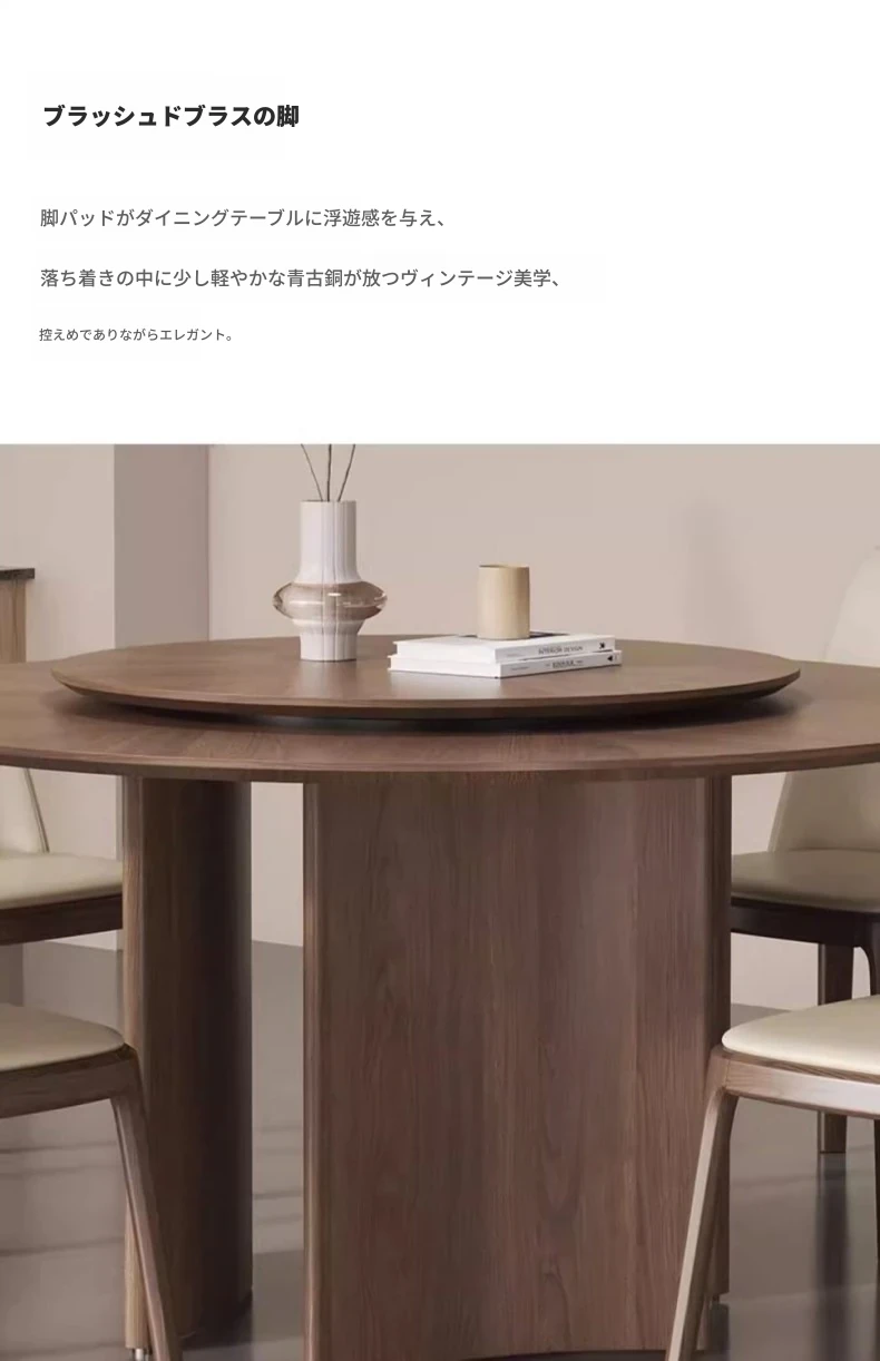 軽やかな高級感と古風を融合した、実木製の丸型ダイニングテーブル!小さなスペースにもぴったりな回転式デザイン。岩板とクルミの色合いがモダンでシンプルな印象を与え、どんなインテリアにもマッチします。