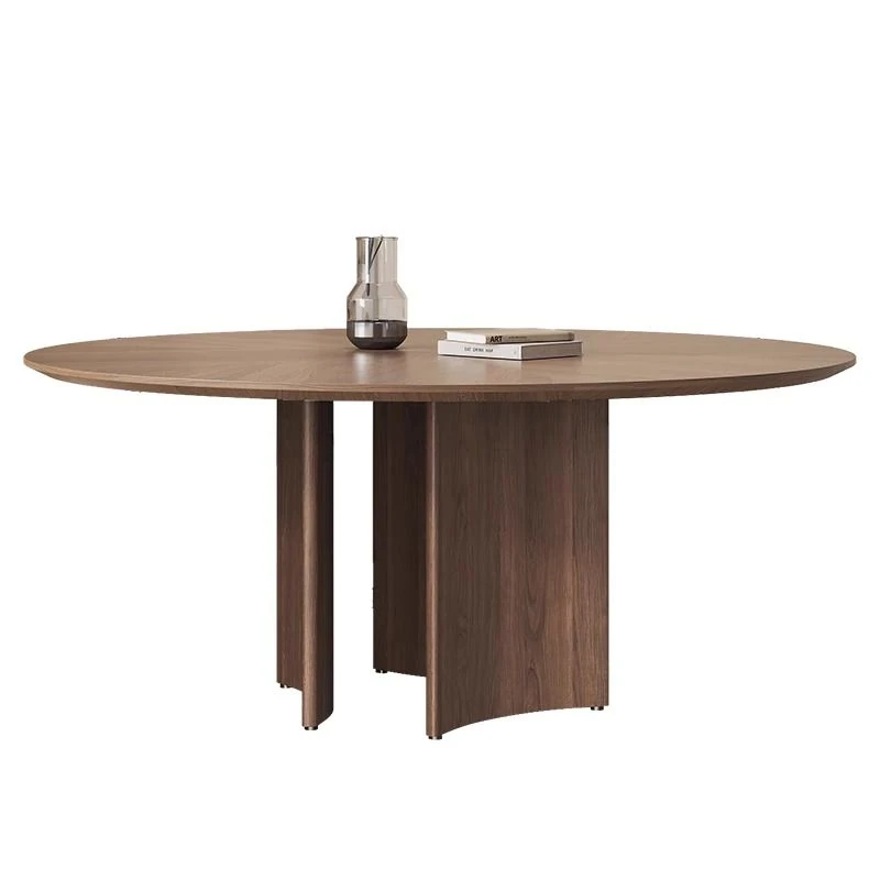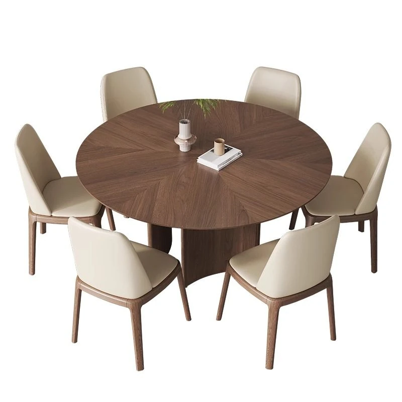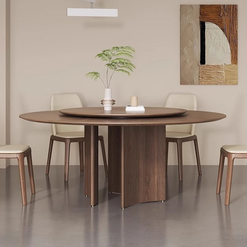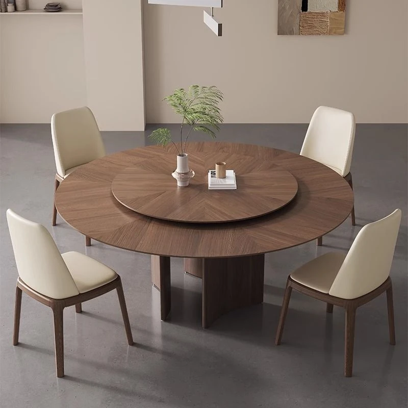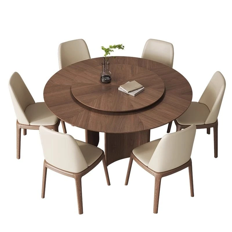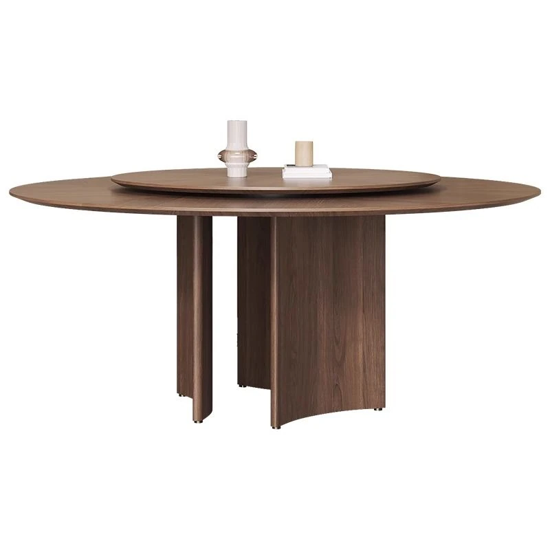 軽やかな高級感と古風を融合した、実木製の丸型ダイニングテーブル!小さなスペースにもぴったりな回転式デザイン。岩板とクルミの色合いがモダンでシンプルな印象を与え、どんなインテリアにもマッチします。