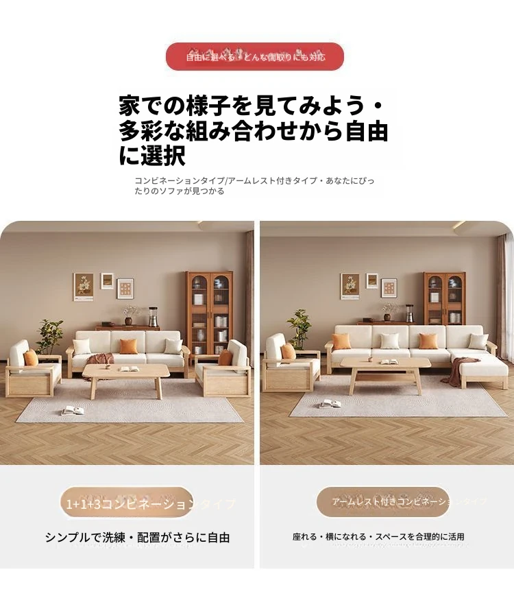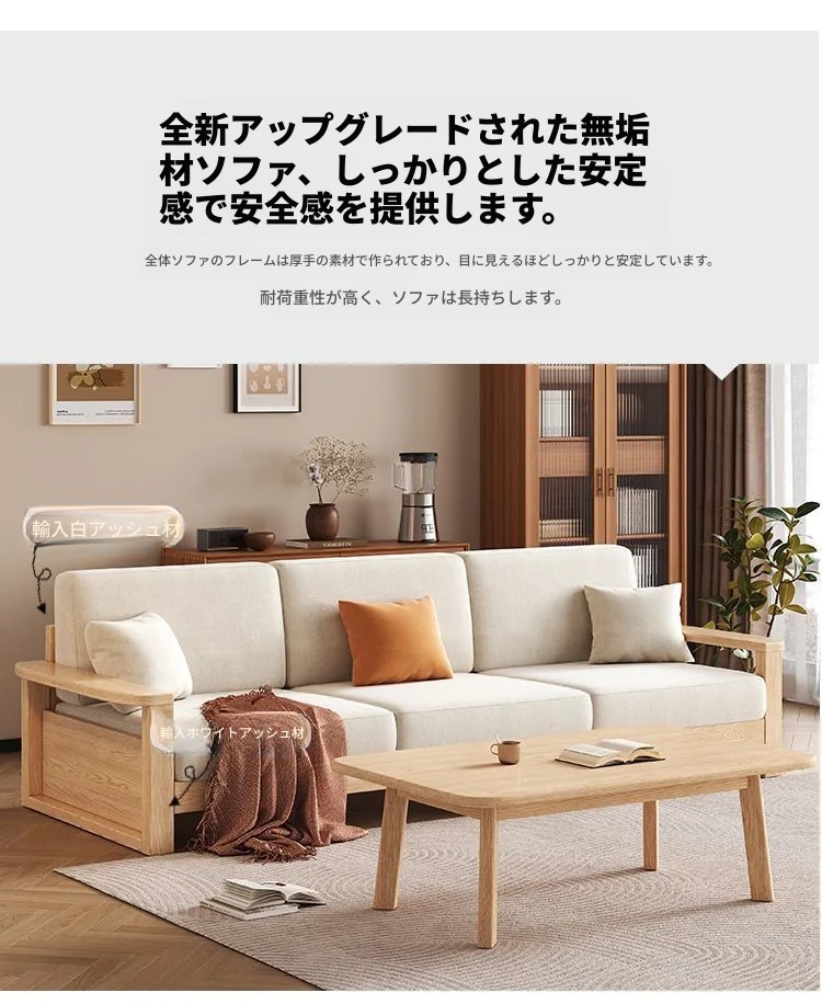 ホワイトサマー木製ソファセット 小型住宅向け 冬のモダンデザイン 2way 北欧スタイル シンプルな天然木 M11 収納付き おしゃれなリビング空間を演出!