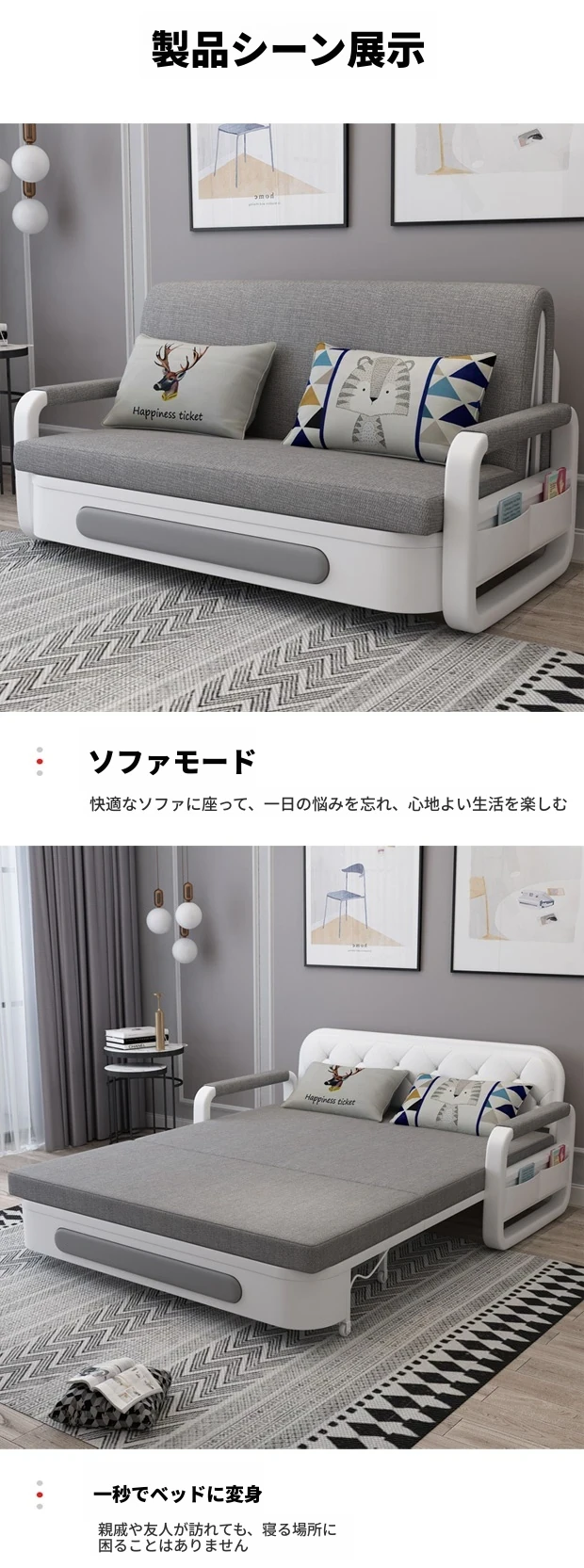多機能折りたたみソファベッド|1.5mのコンパクトデザインで、リビングや小さな部屋に最適!伸縮式でダブルユース、収納スペースも完備!快適な寝心地とスタイリッシュな空間を実現!