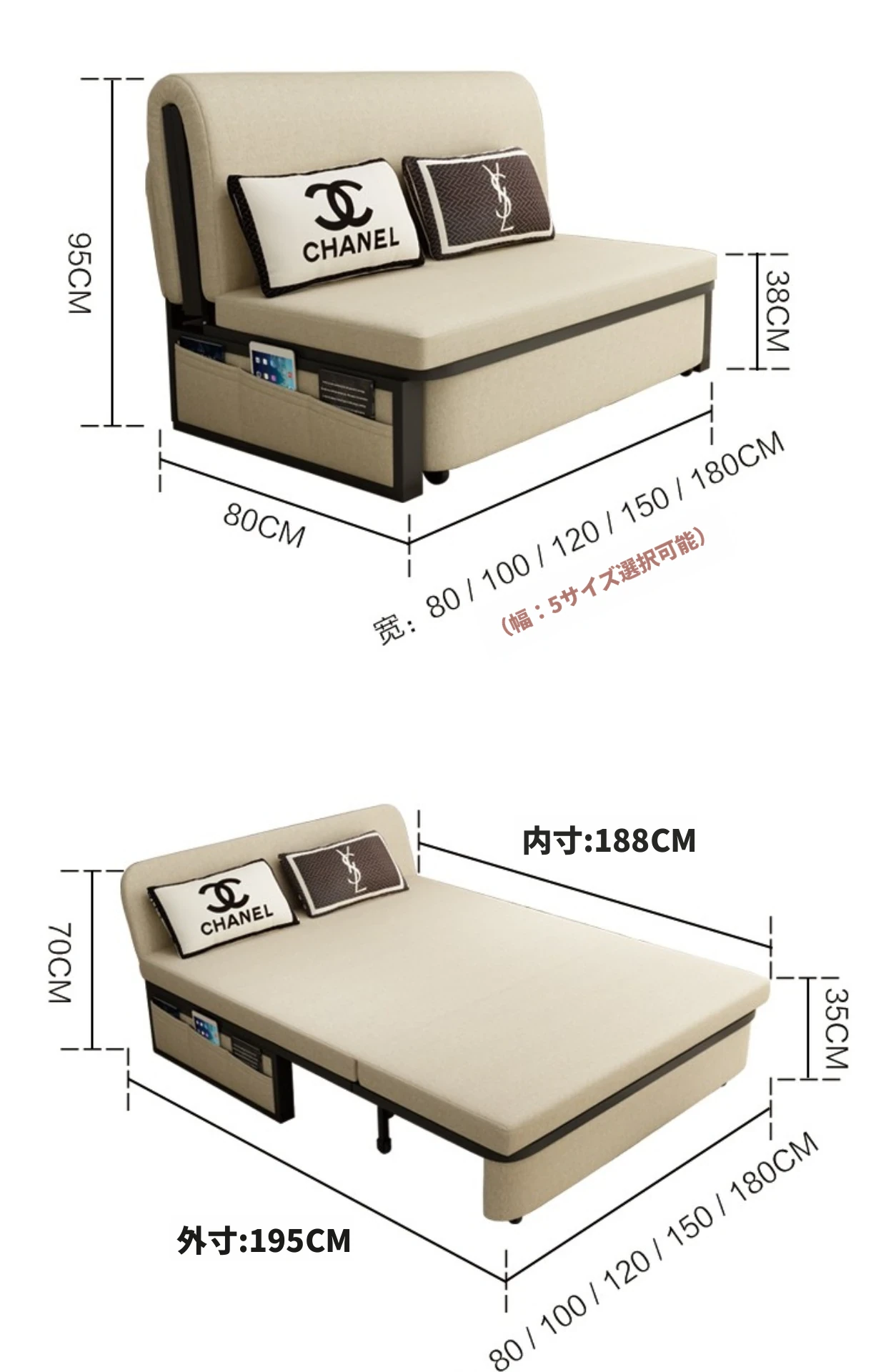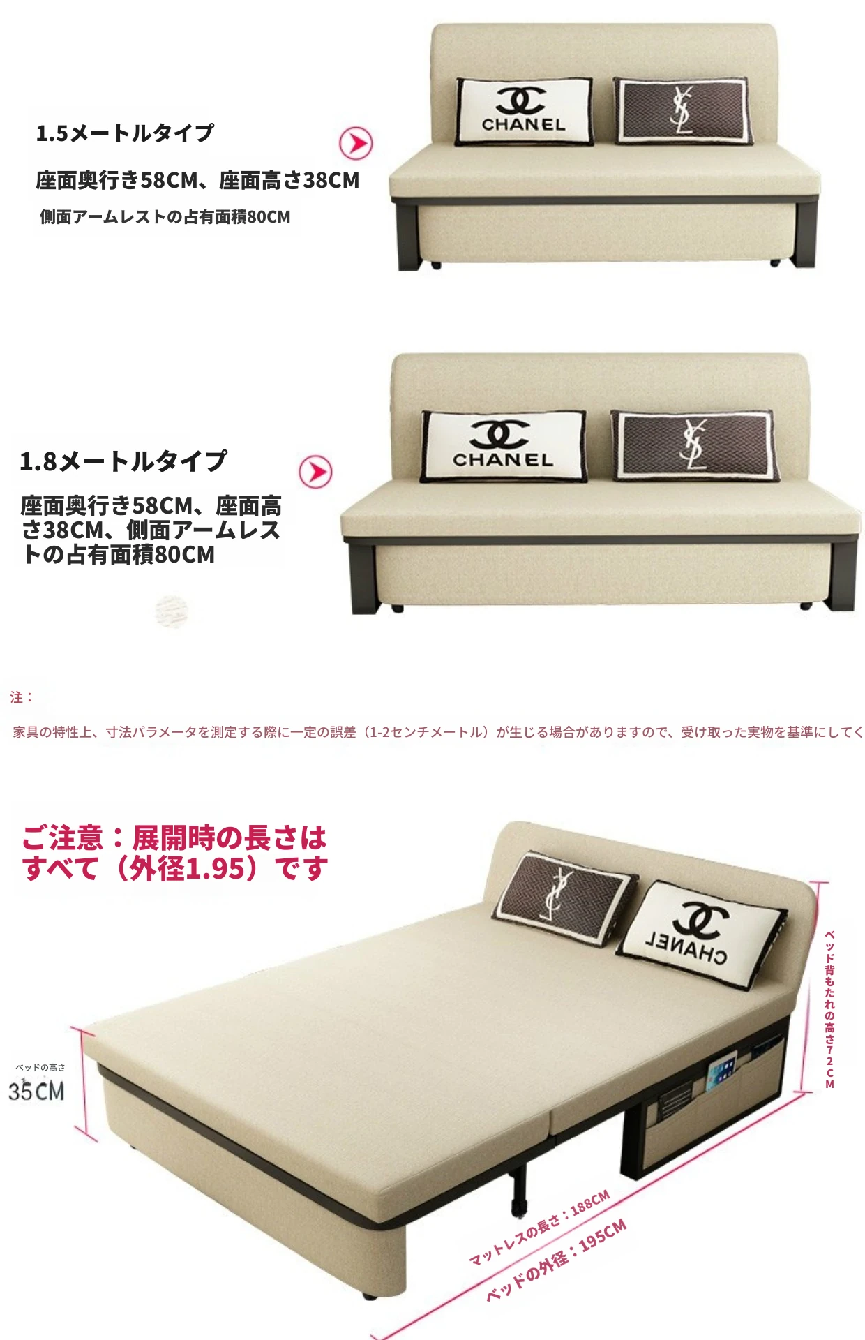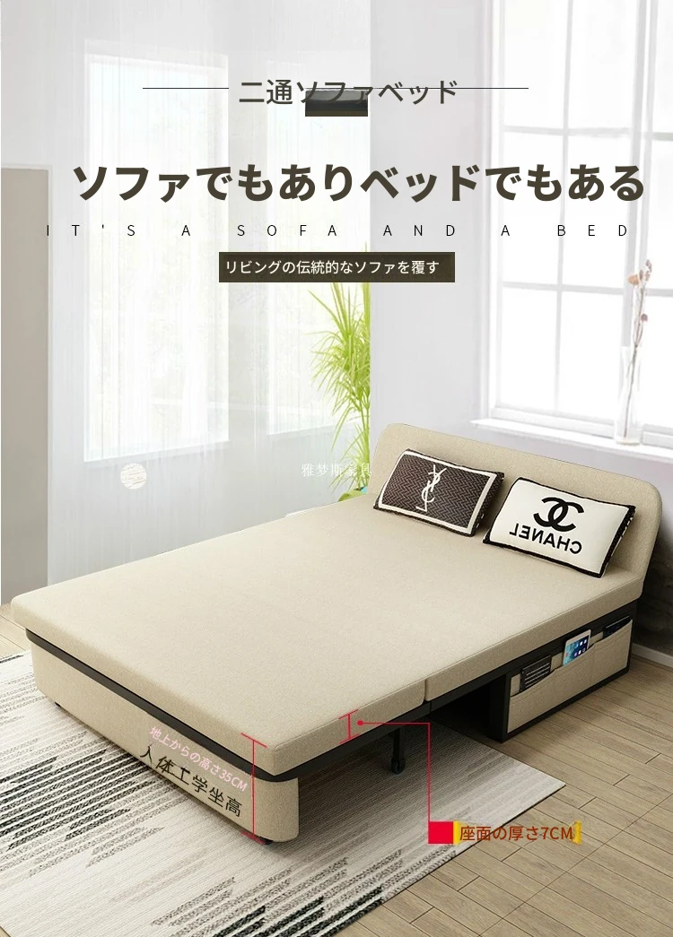 多機能折りたたみソファベッド|伸縮式収納付き|小型住宅に最適なシンプルでモダンなデザイン|ダブルサイズとシングルサイズ両方対応!快適な空間を実現!