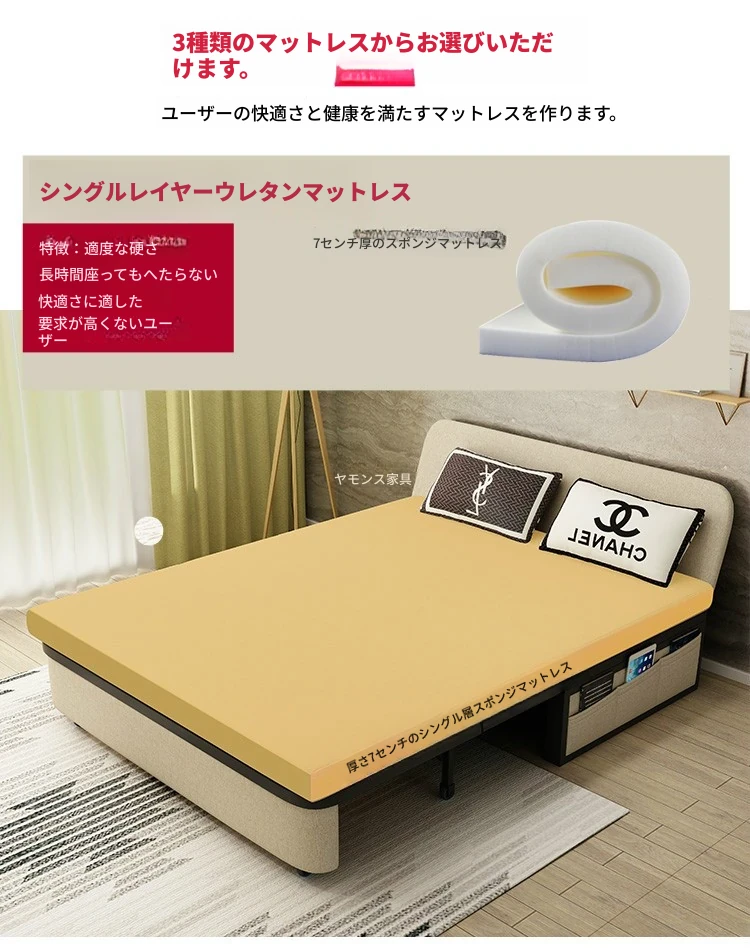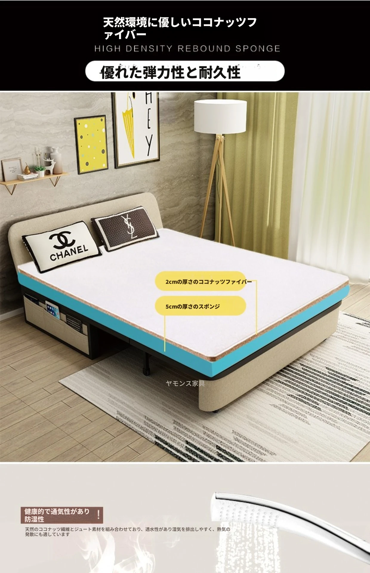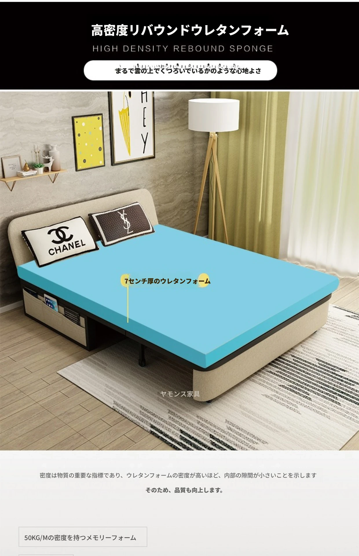 多機能折りたたみソファベッド|伸縮式収納付き|小型住宅に最適なシンプルでモダンなデザイン|ダブルサイズとシングルサイズ両方対応!快適な空間を実現!