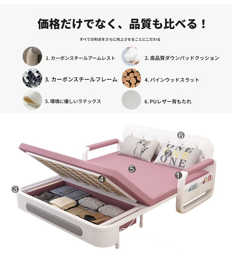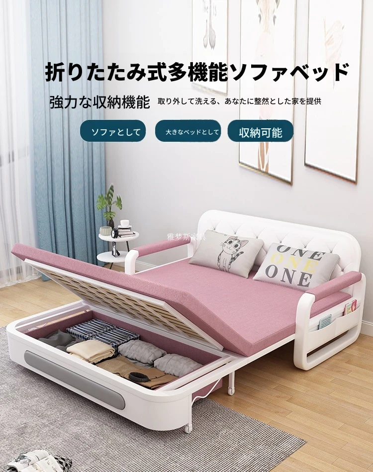 折りたたみ式ソファベッド - 多機能で省スペースなデザイン!シンプルでモダンなスタイル、収納付きの二人用リビングルーム向け。小さなお部屋にぴったりな一人用ベッドも兼ね備えています。