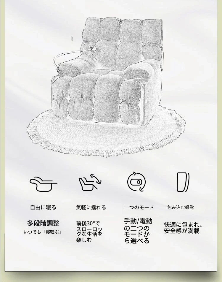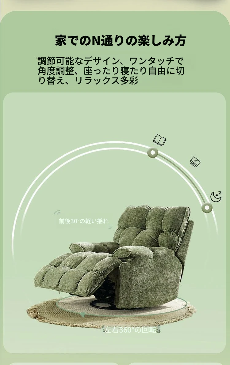 多機能一体型シングルソファ|寝る・座る・揺れる!おしゃれな小型スペース向け、リラックスできる家庭用の人気アイテム。快適なひとときをお届けします!