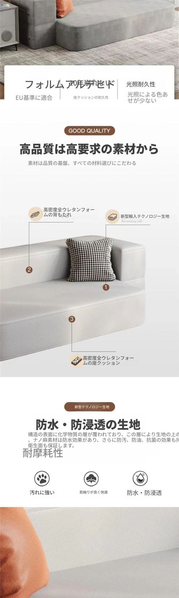 選りすぐりの木製クリーム風デザイン!小型住宅に最適な伸縮式ベッド兼用キャットグラブ布製ソファ。新登場の電動機能付き3人掛けで、快適さとスタイルを両立!