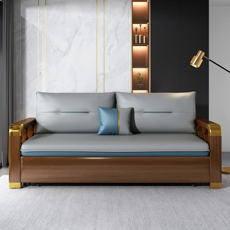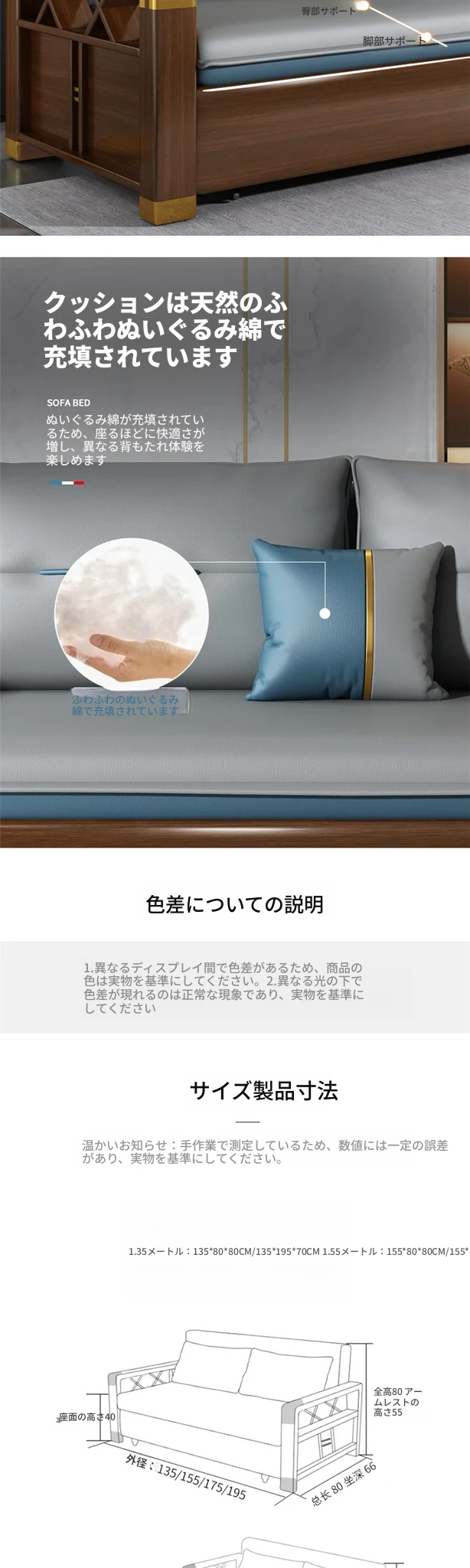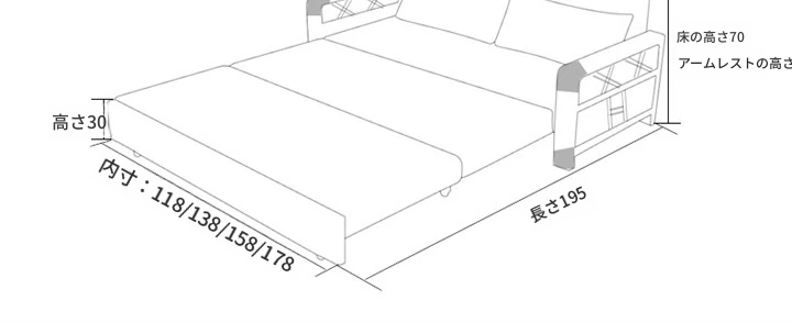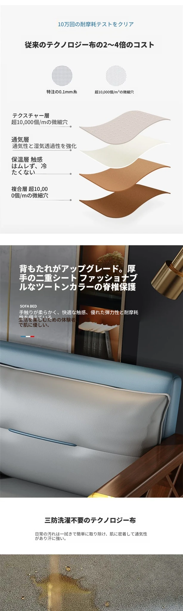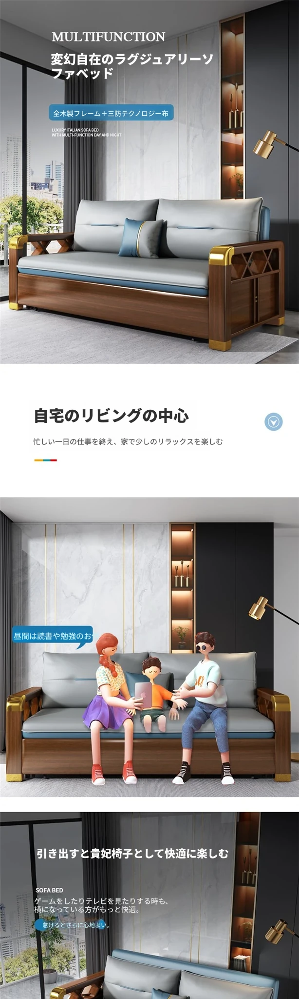 高級感溢れる天然木製マルチファンクションソファベッド!テクノロジー布仕上げで、リビングルームや狭いスペースに最適な二人用・折りたたみ可能なモダンシンプルデザイン。快適な睡眠空間を提供します!