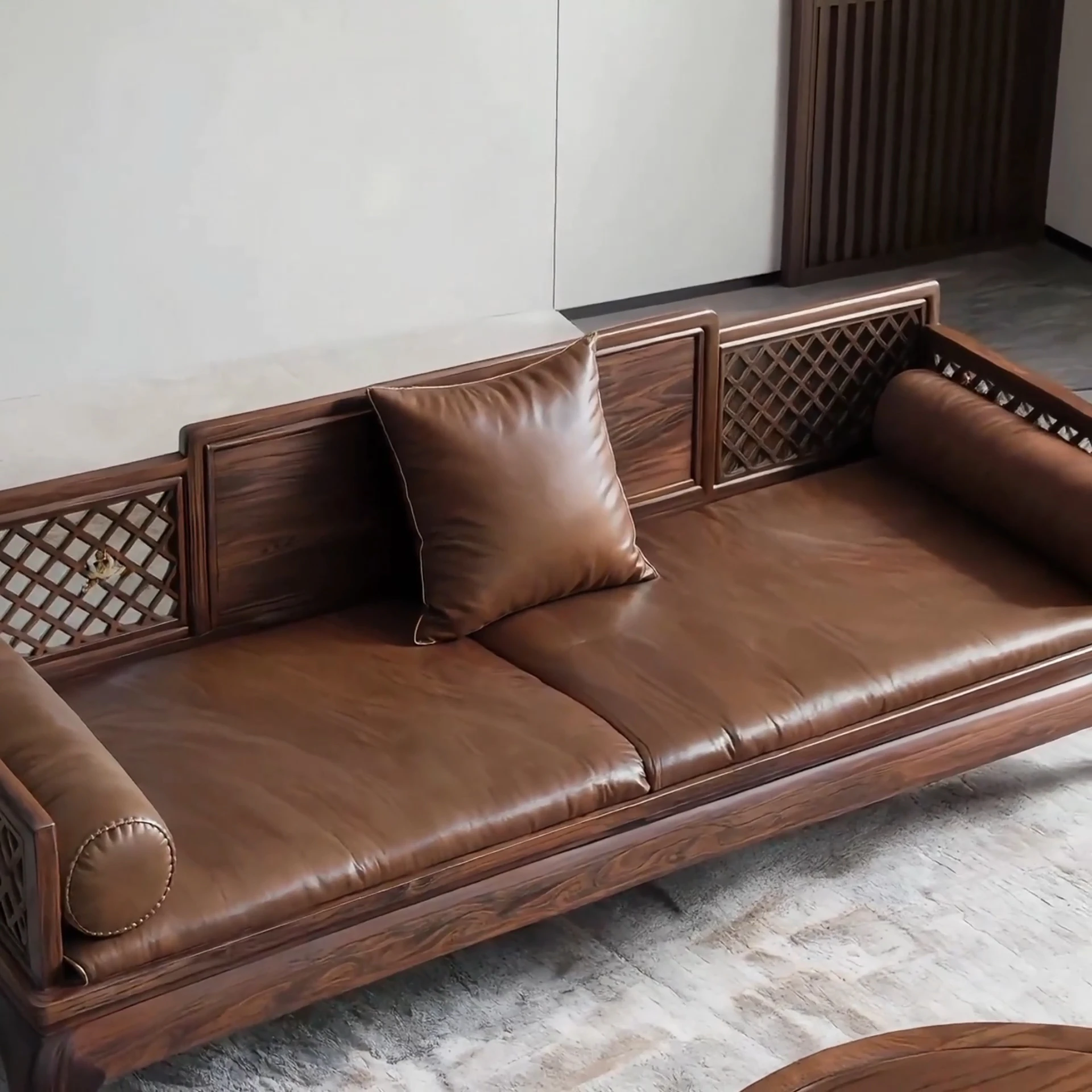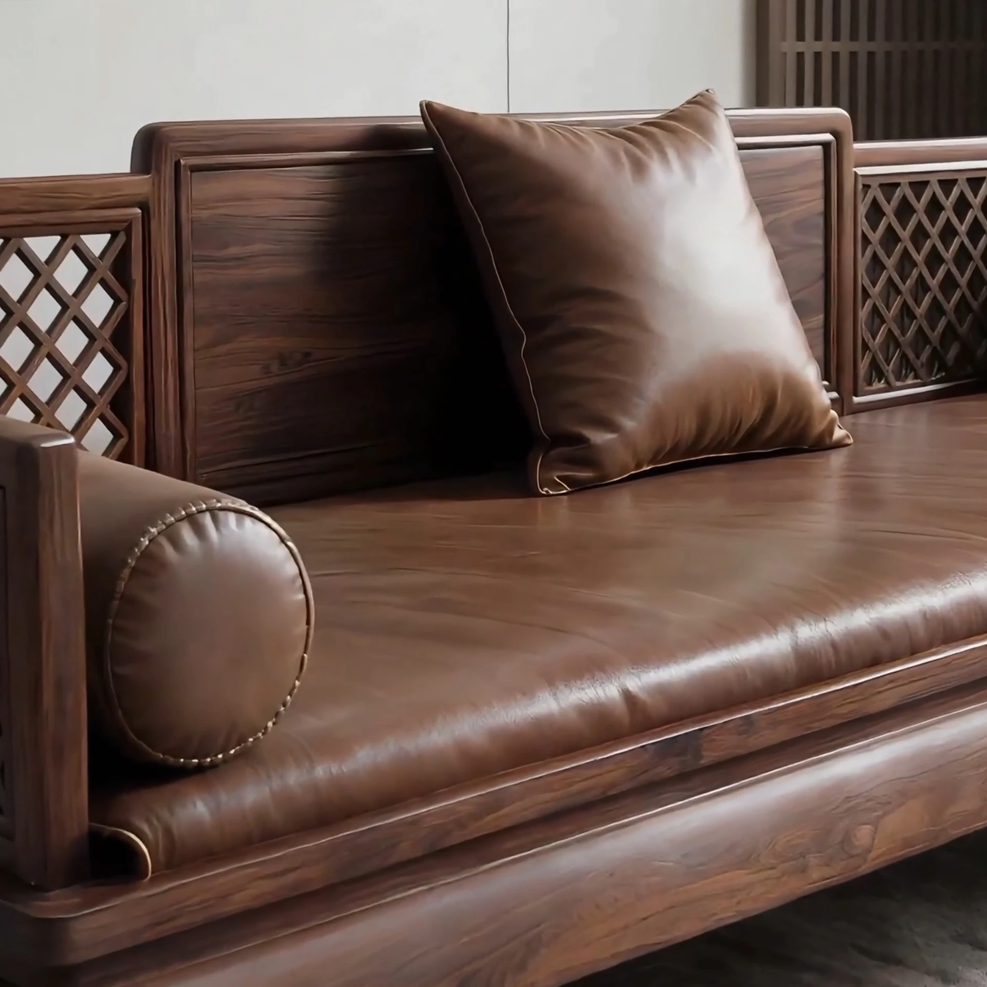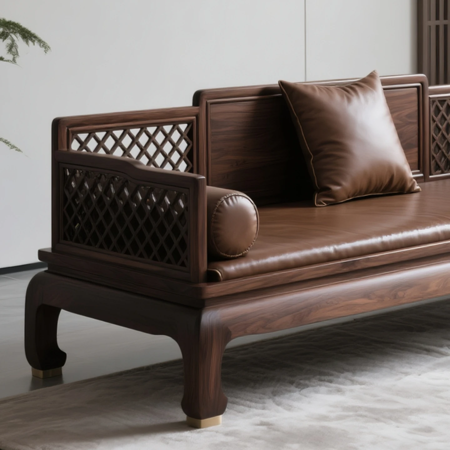 新中式スタイルの北米産ブラックウォールナット材使用!シンプルでスタイリッシュなロハンソファ。大、中、小のどんなお部屋にもぴったりな実木製のロハンベッド。リビングを格上げする洗練されたデザイン!