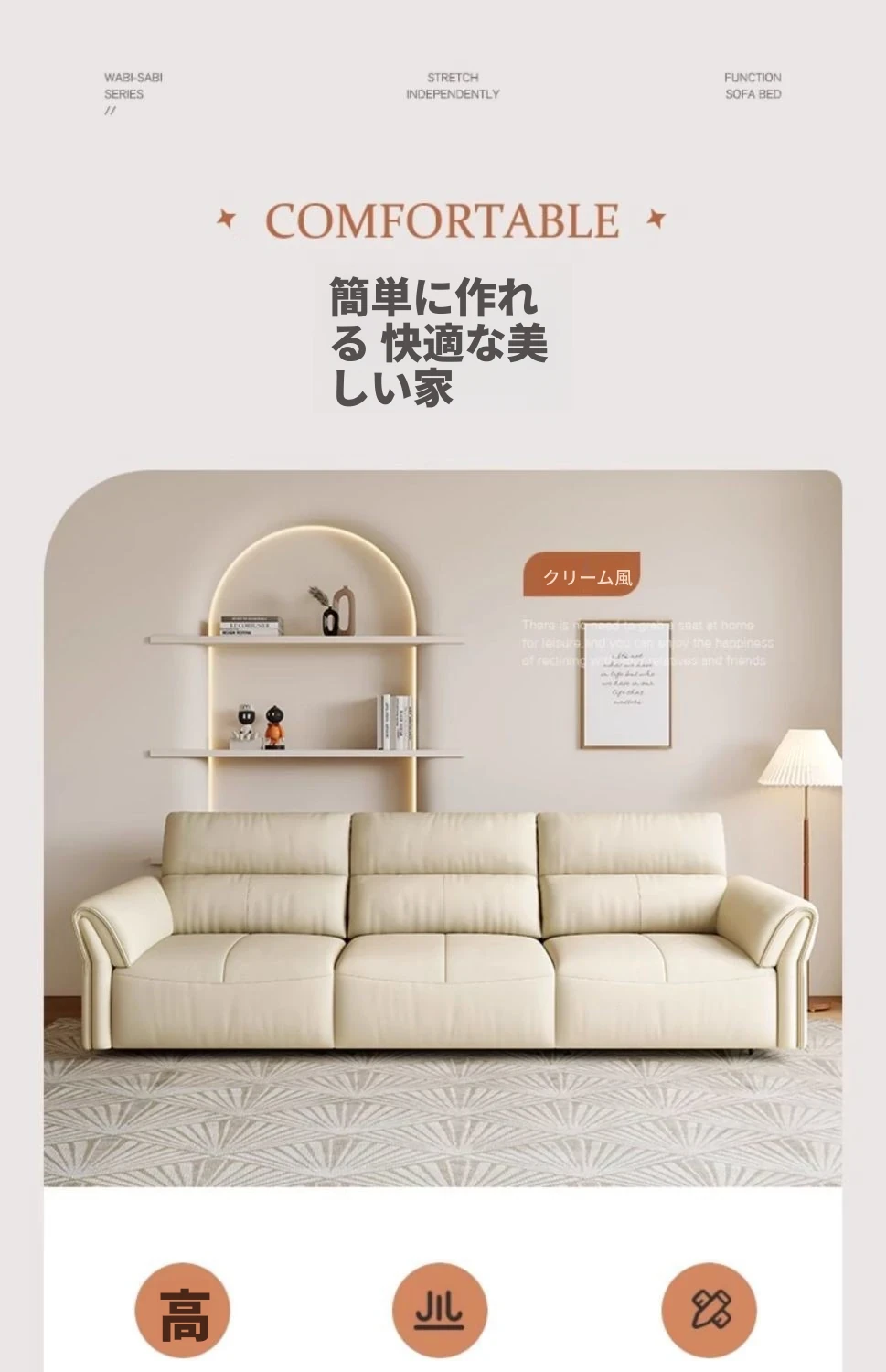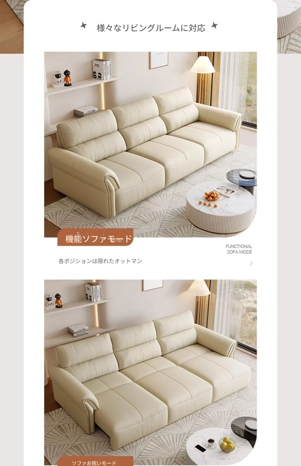 新作 牛革電動レザーソファー リビング兼用 ラウンジャーソファー スライド式 マルチファンクション フラットソファーベッドで快適なひとときを!
