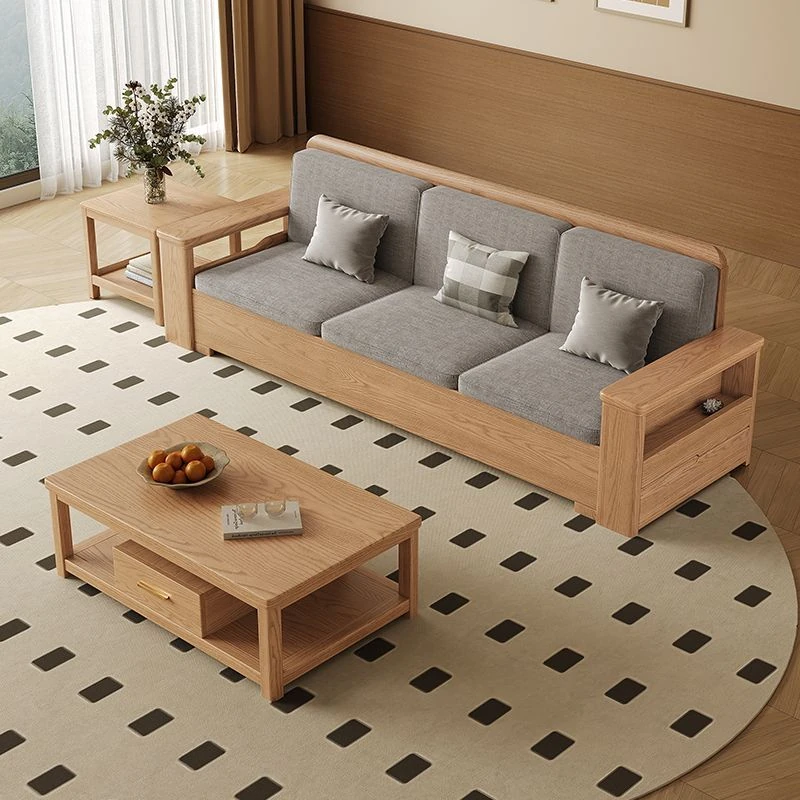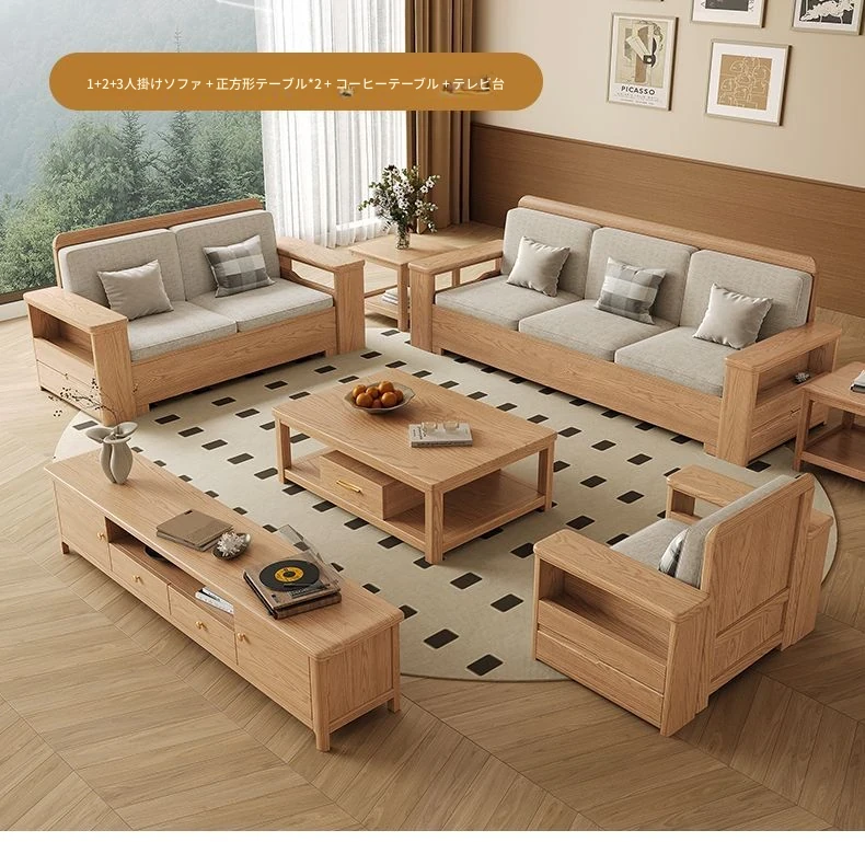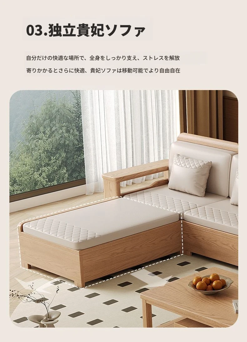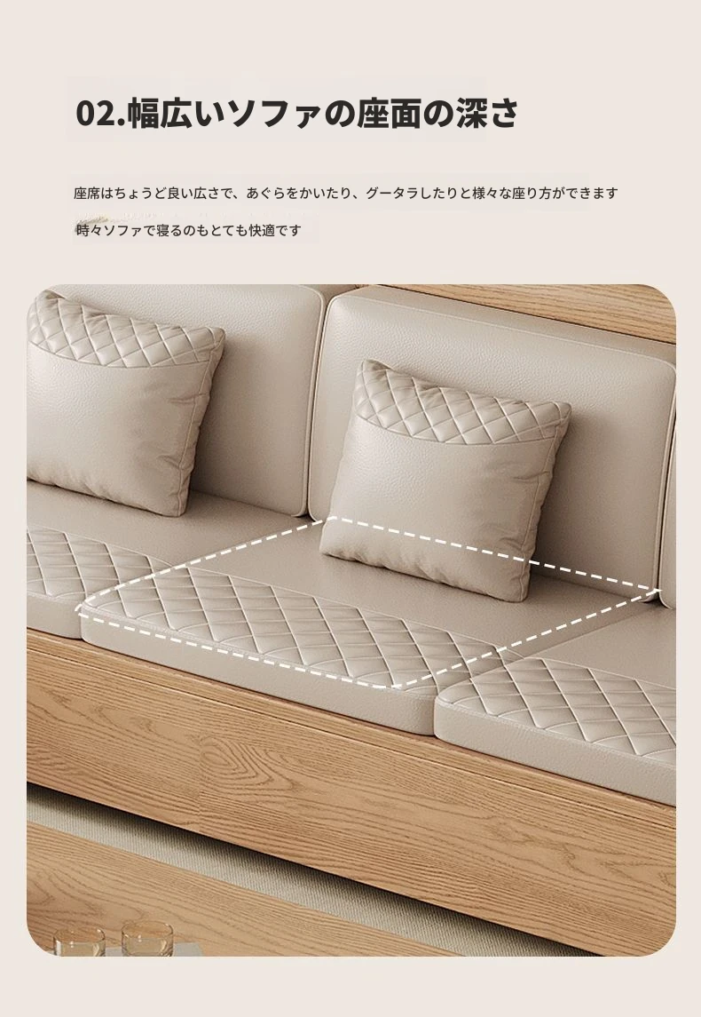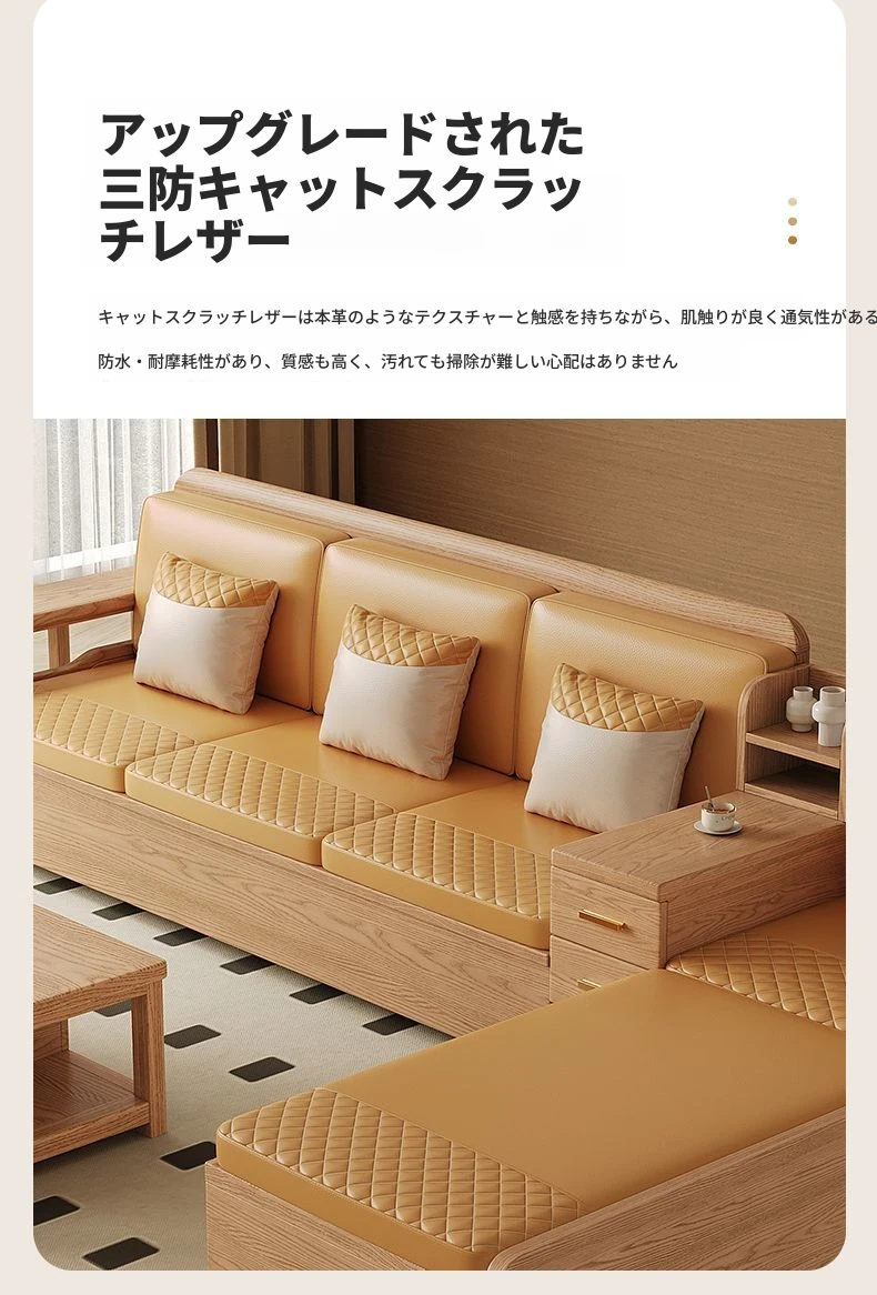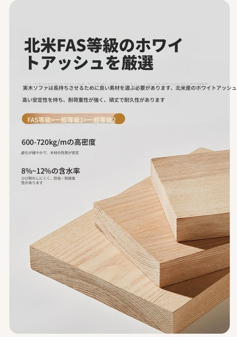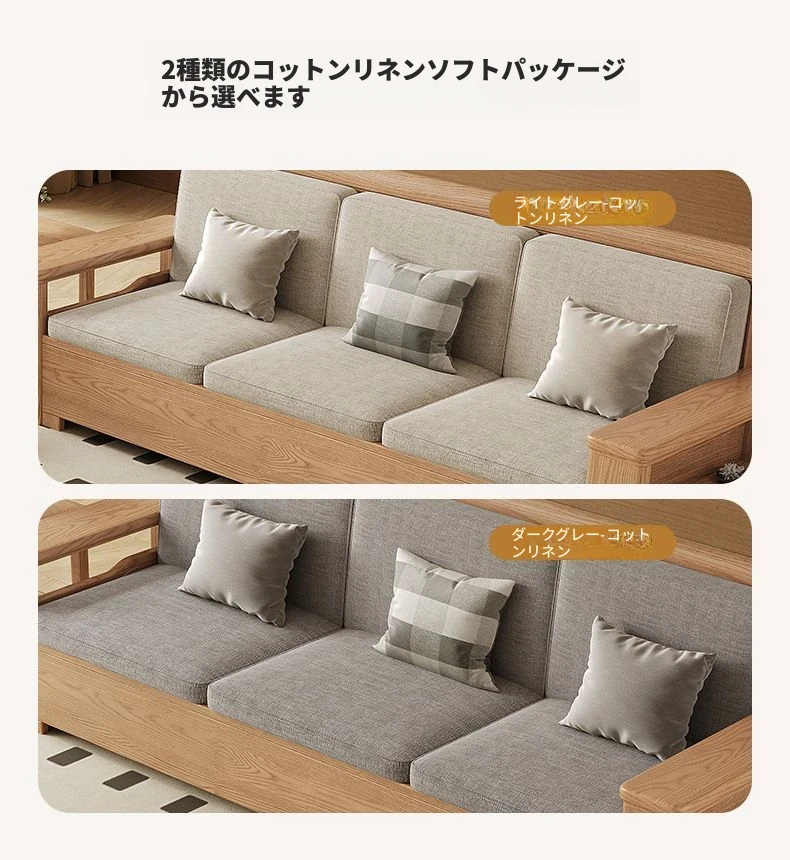 北欧スタイルのホワイトアッシュ無垢材ソファ収納付き!布製のモダンでシンプルなデザイン、小さなリビングにぴったりのナチュラルカラー家具。おしゃれで機能的な空間を演出します!