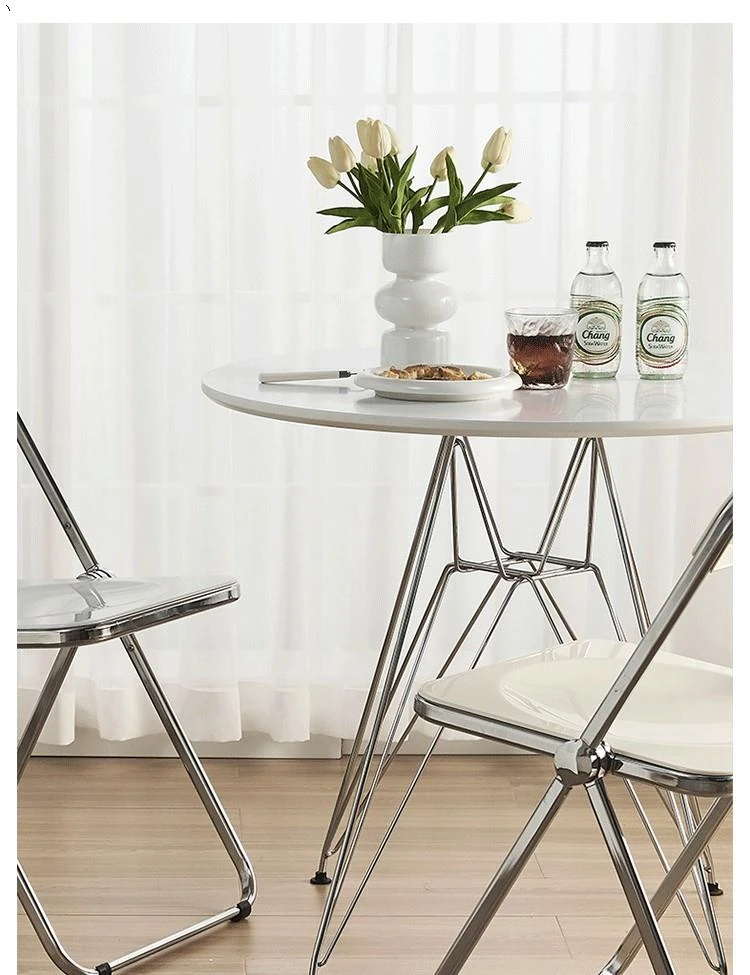 北欧スタイルの家庭用小型ダイニングテーブル!おしゃれなインスタ映えのイームズデザイン、リラックスしたおもてなしに最適なホワイトの円形テーブル。狭いスペースでも大活躍!