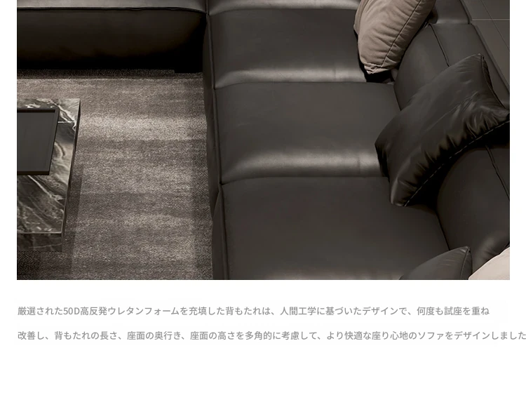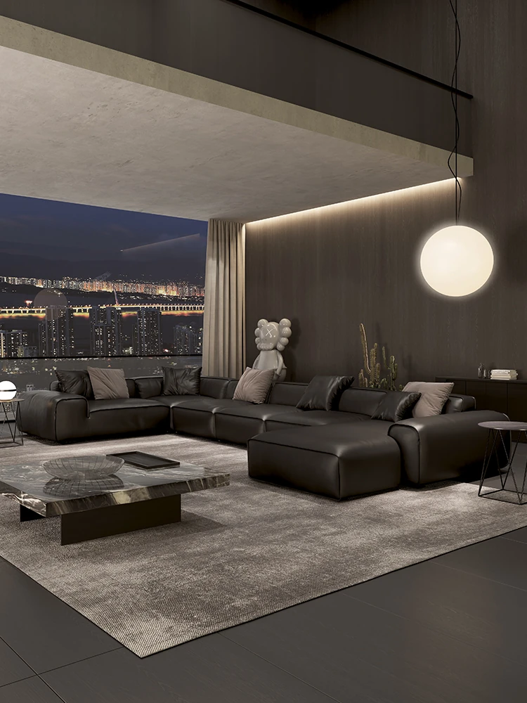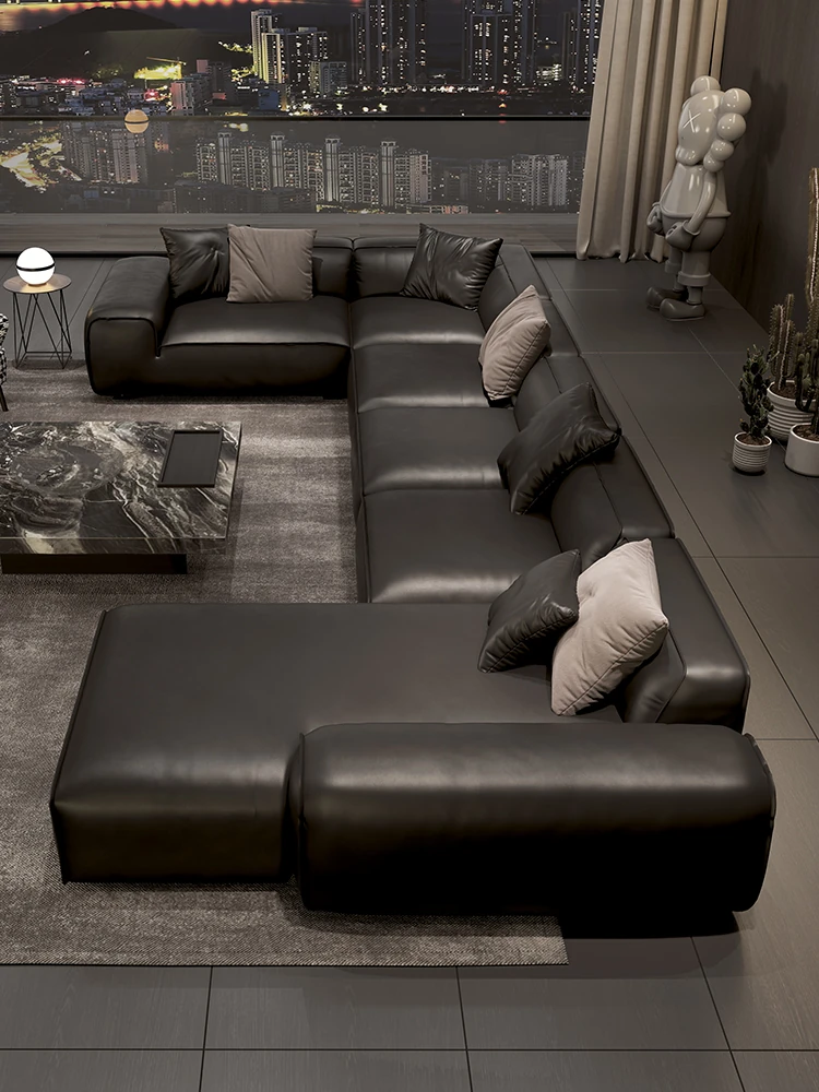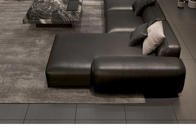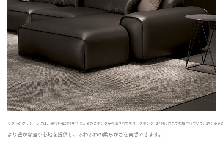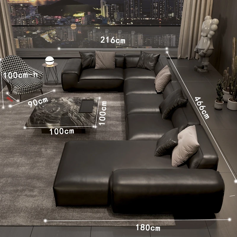 大黒牛ソファ|全皮使用で贅沢な座り心地|佛山の広々としたリビングにぴったりな本革ソファ|直線的デザインでスタイリッシュな空間を演出!