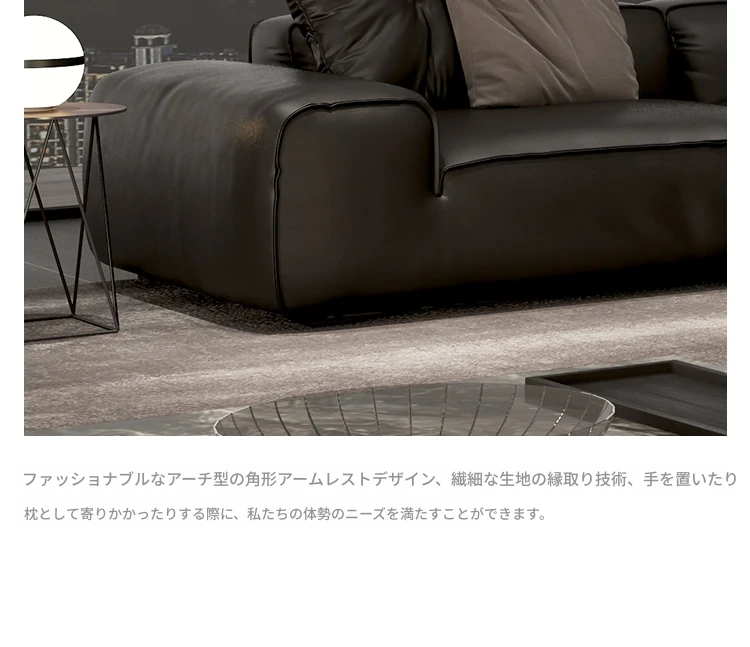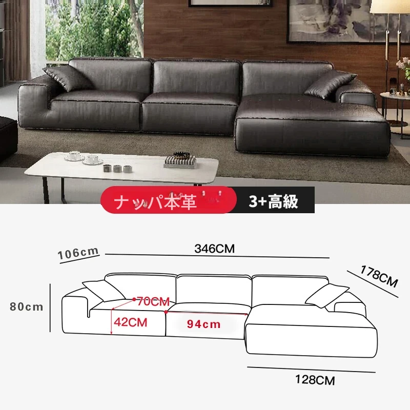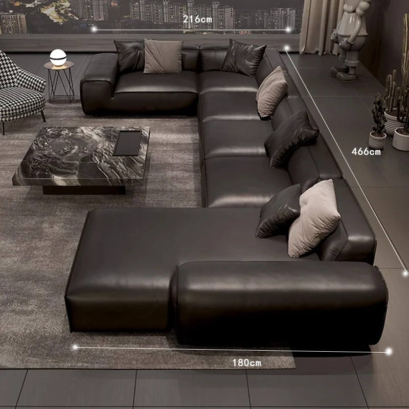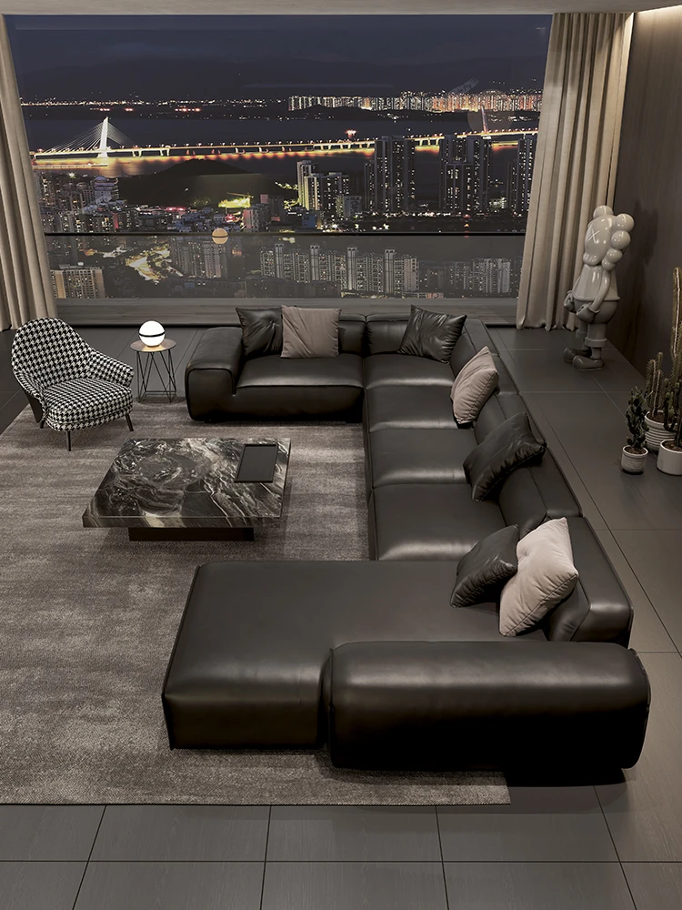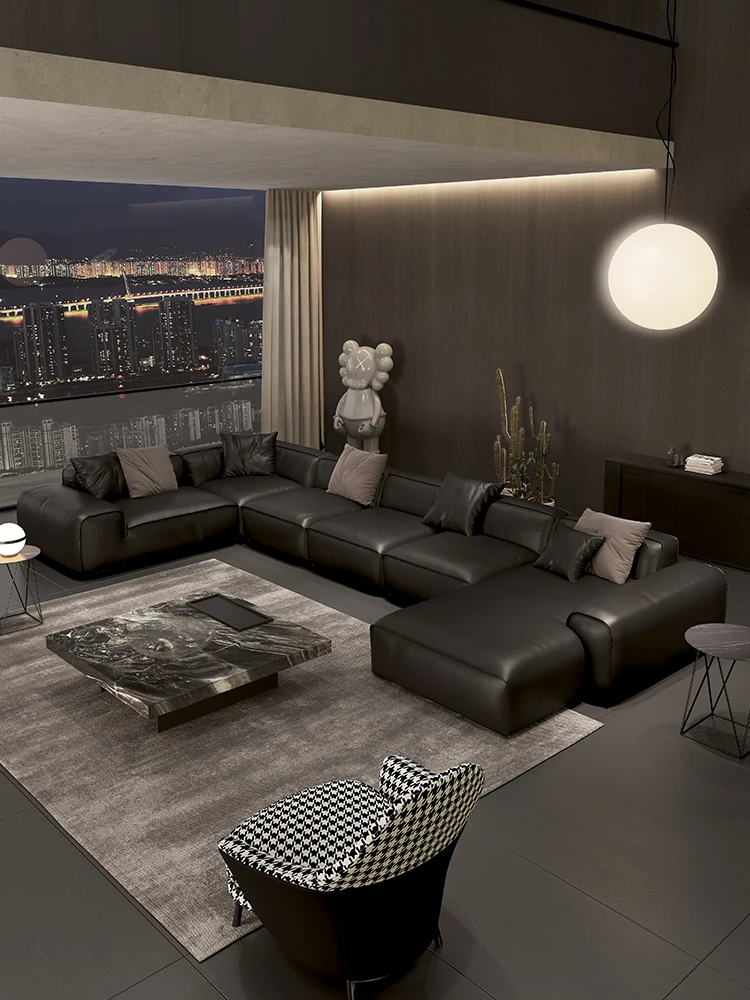 大黒牛ソファ|全皮使用で贅沢な座り心地|佛山の広々としたリビングにぴったりな本革ソファ|直線的デザインでスタイリッシュな空間を演出!