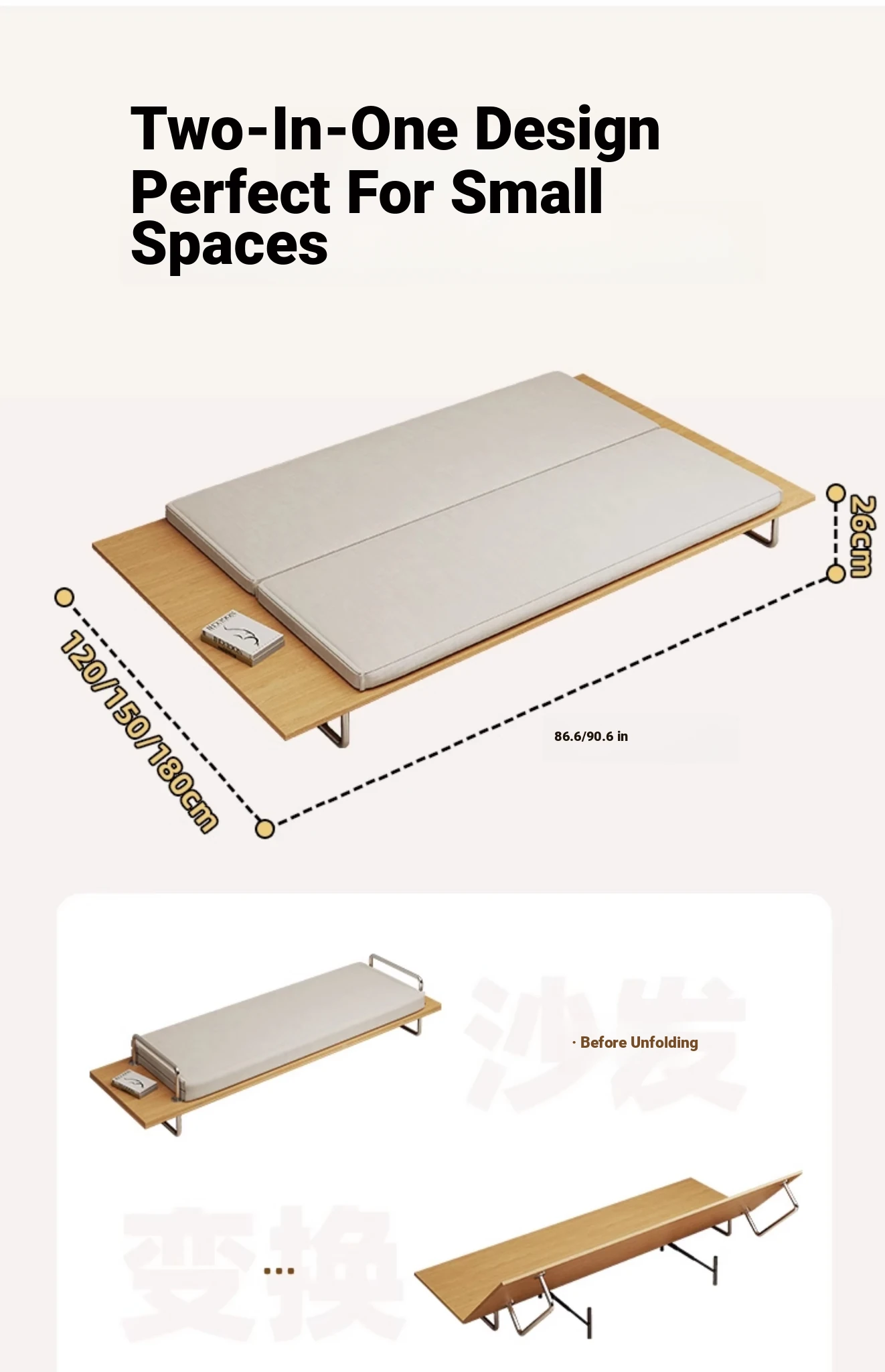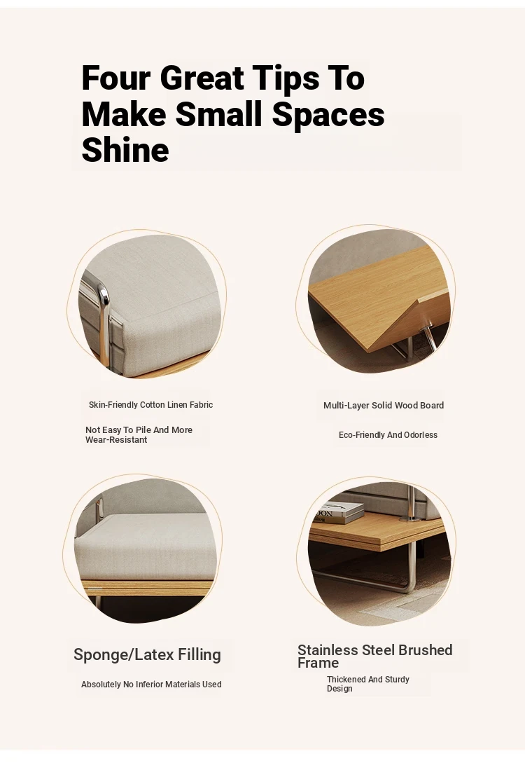 Scandinavian Minimalist Folding Sofa Bed with Storage - Stylish and Space-Saving for Small Apartments, Perfect for Relaxing and Entertaining at Home!