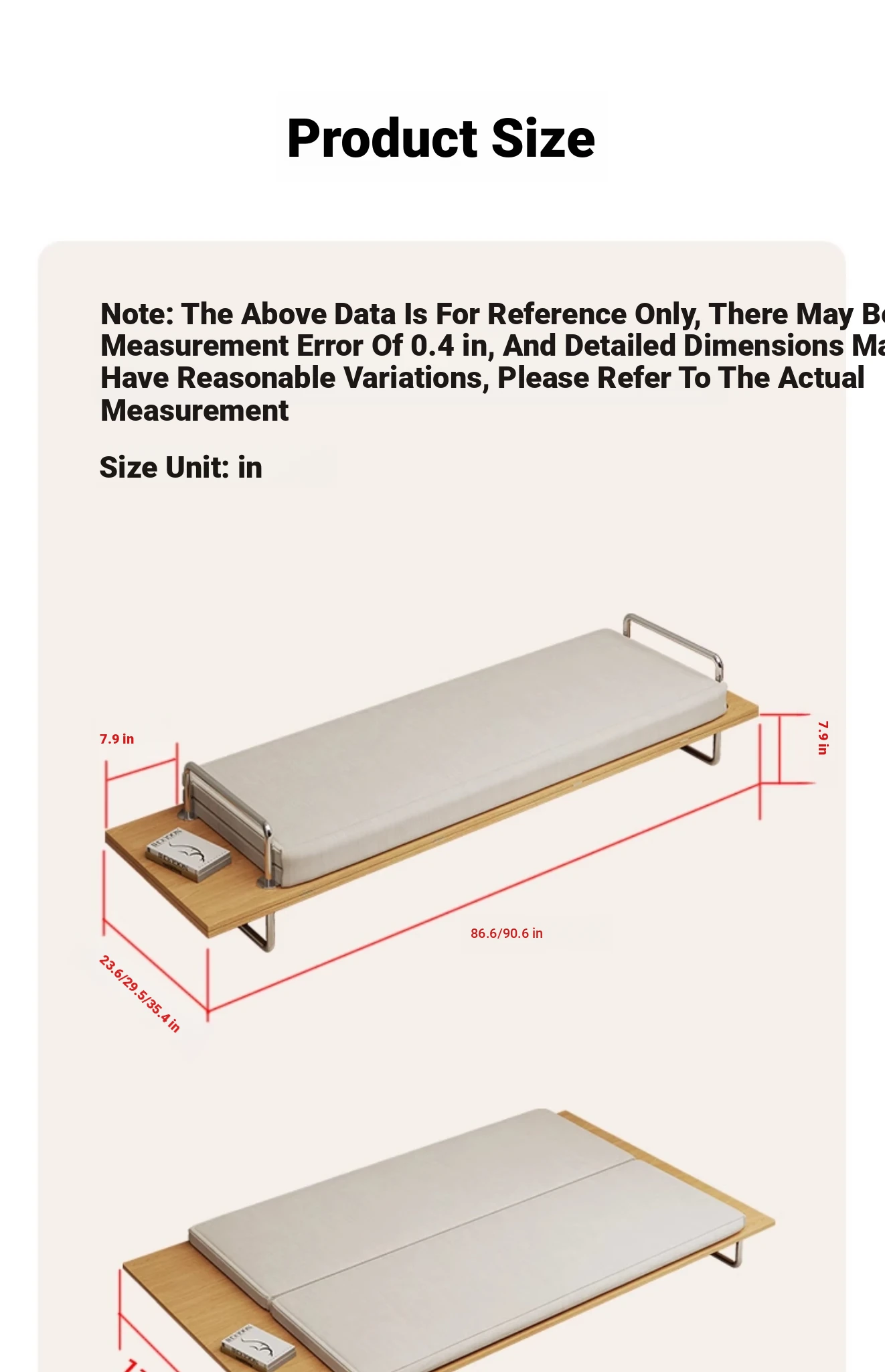 Oak color 35.43in wide single bed frame (open 70.87in) + sponge cushion