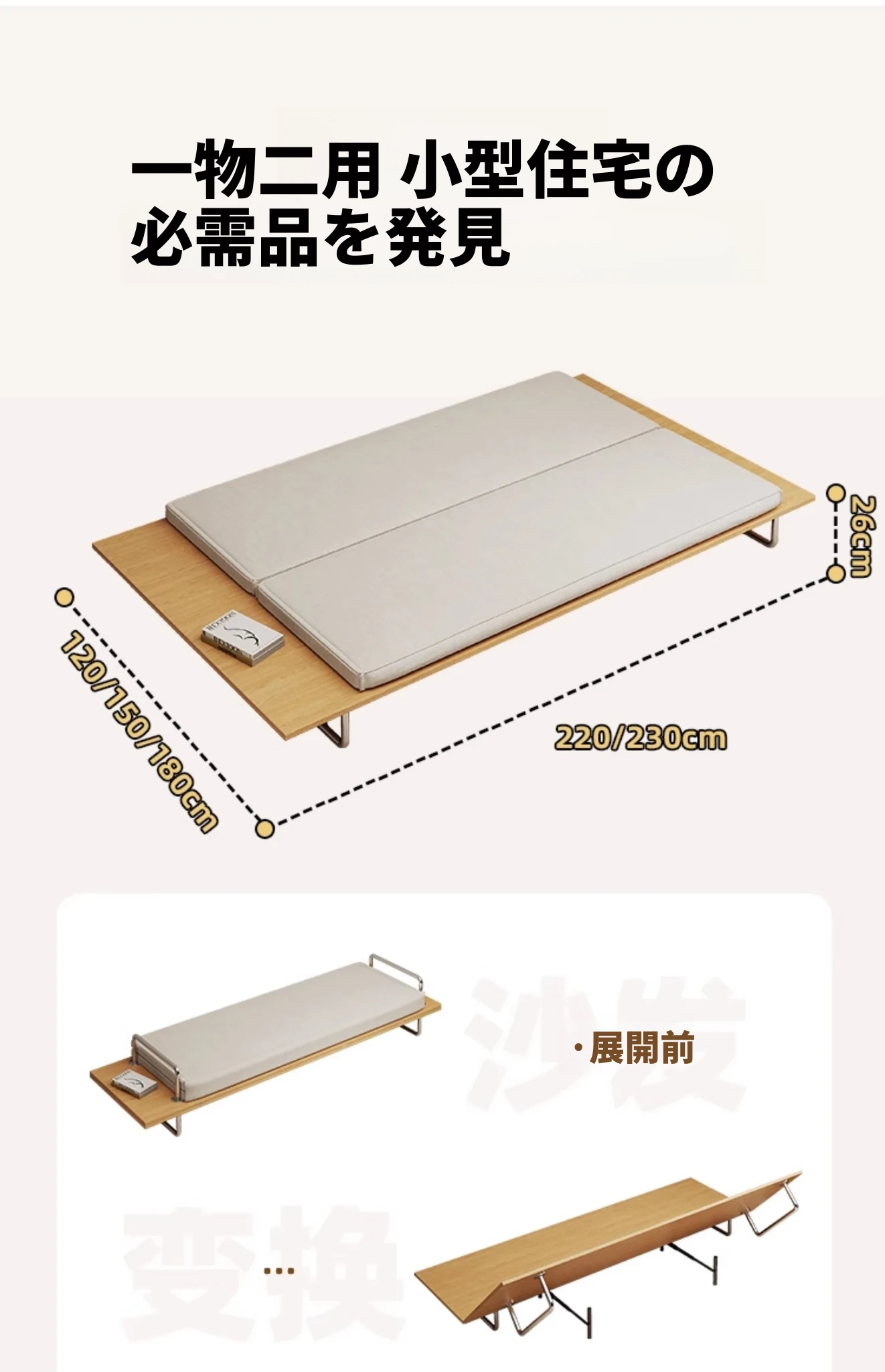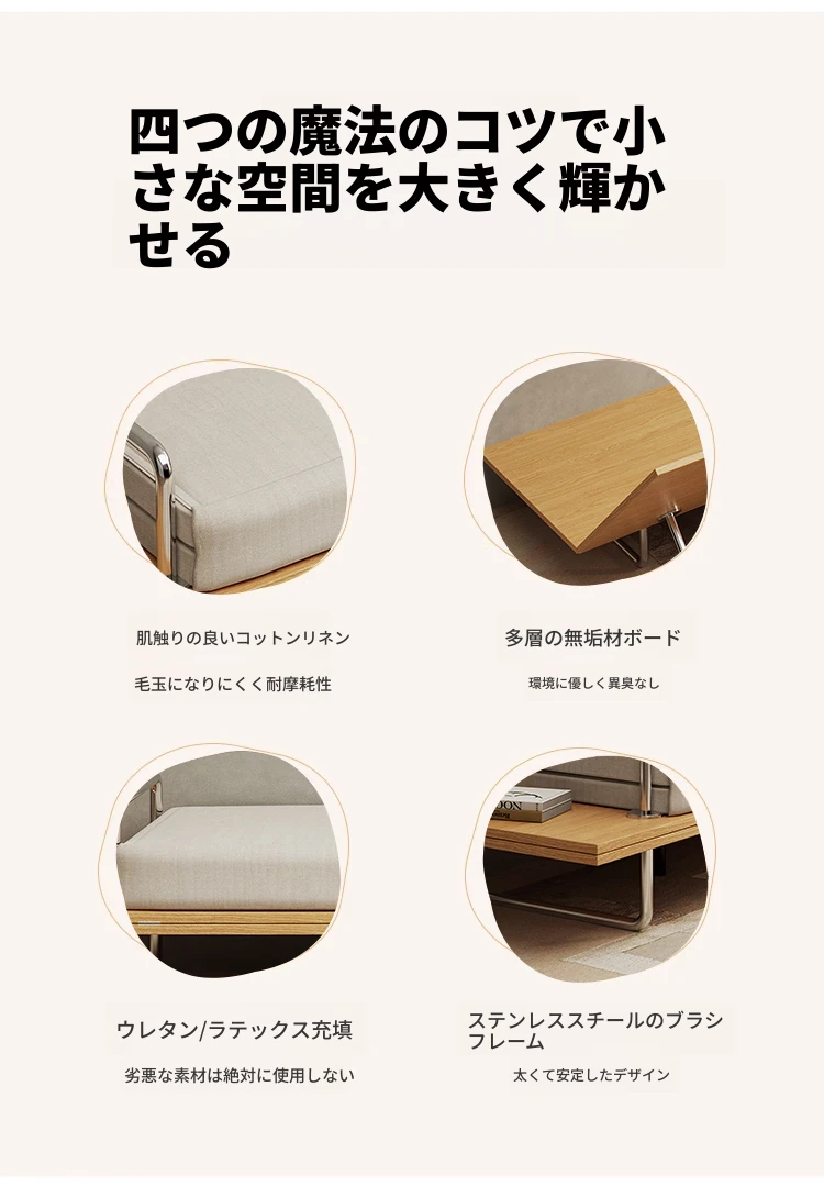 折りたたみ式ソファベッド「侘寂」デザイン、コンパクトな小型住宅に最適!座り心地抜群で、寝ることもできる収納付き。おしゃれでインスタ映えするアイテムをお見逃しなく!