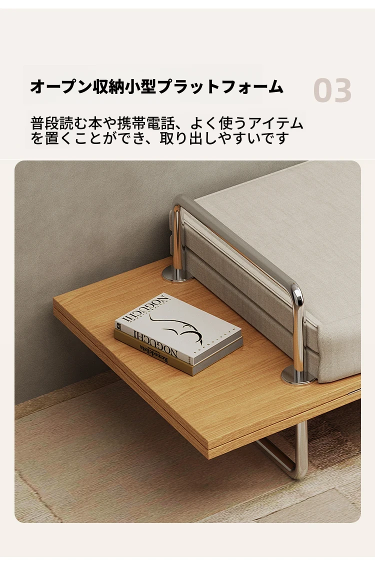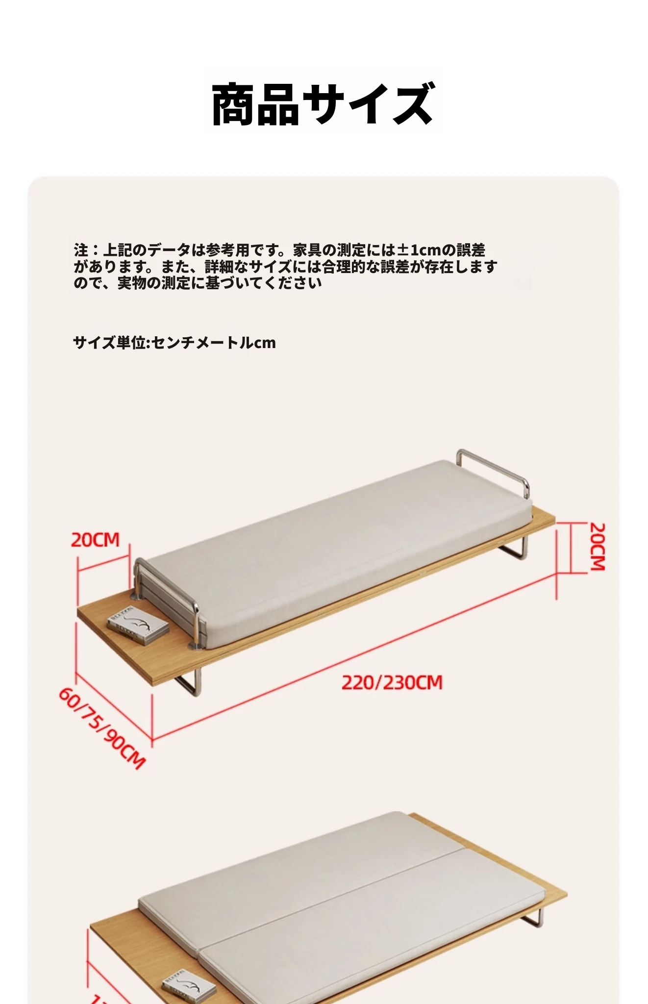 オーク色75CM幅シングルベッドフレーム(開放時150CM)+スポンジクッション