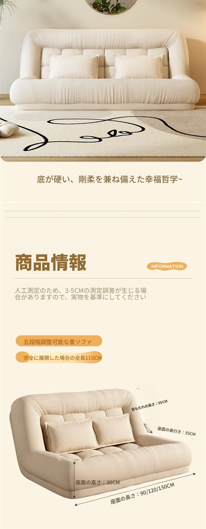 【標準-双人款】クリームホワイト120cm-肌触りの良いテクノロジーフリース/多段階調整(クッション2個付き)