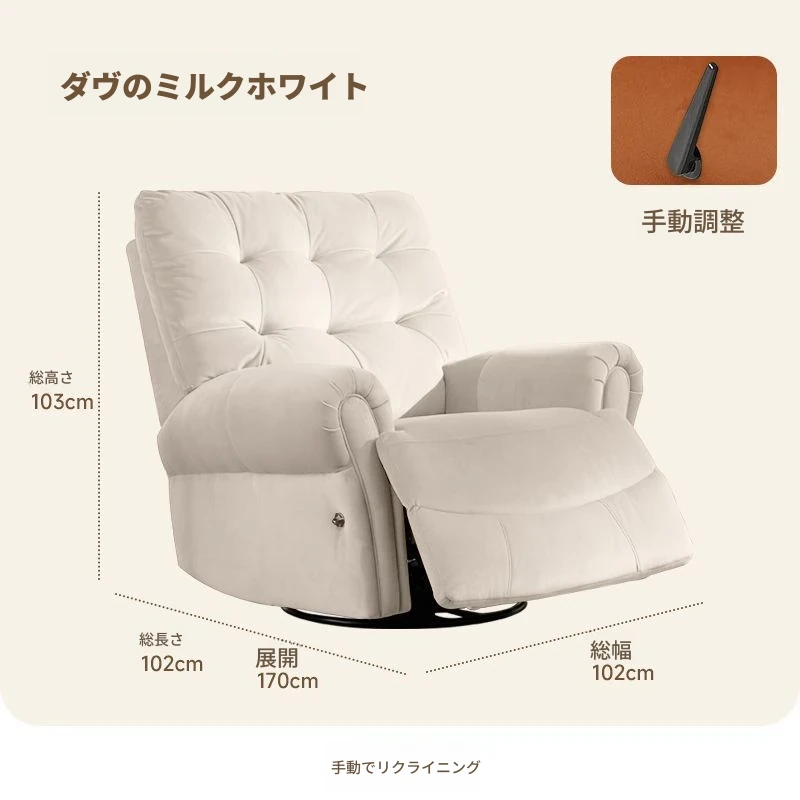 アイボリー色-ダヴベルベット、手動リクライニング+ロッキング