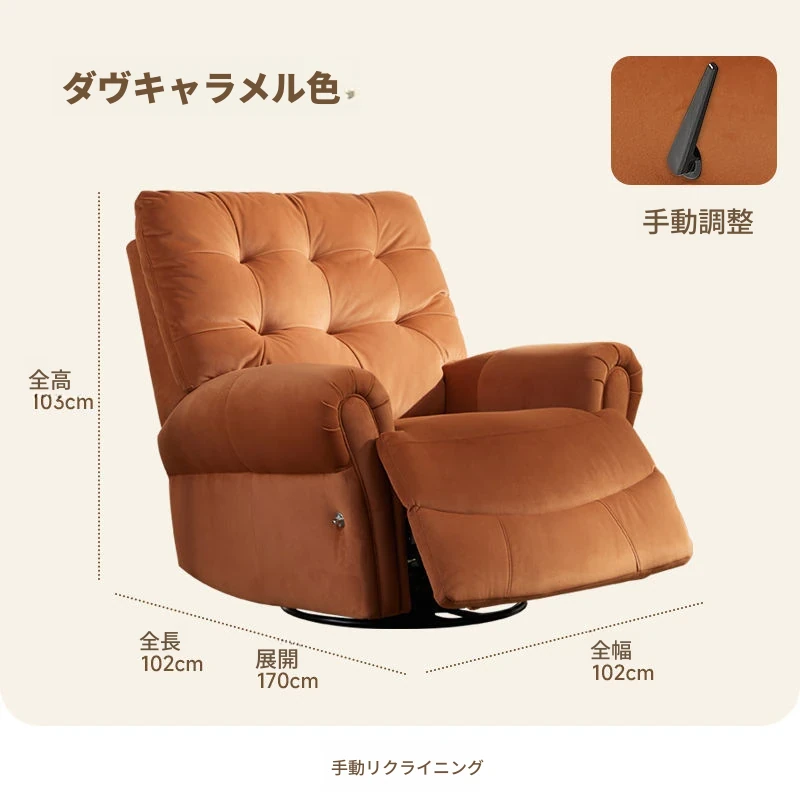 キャラメル色-ダヴベルベット、手動リクライニング+ロッキング