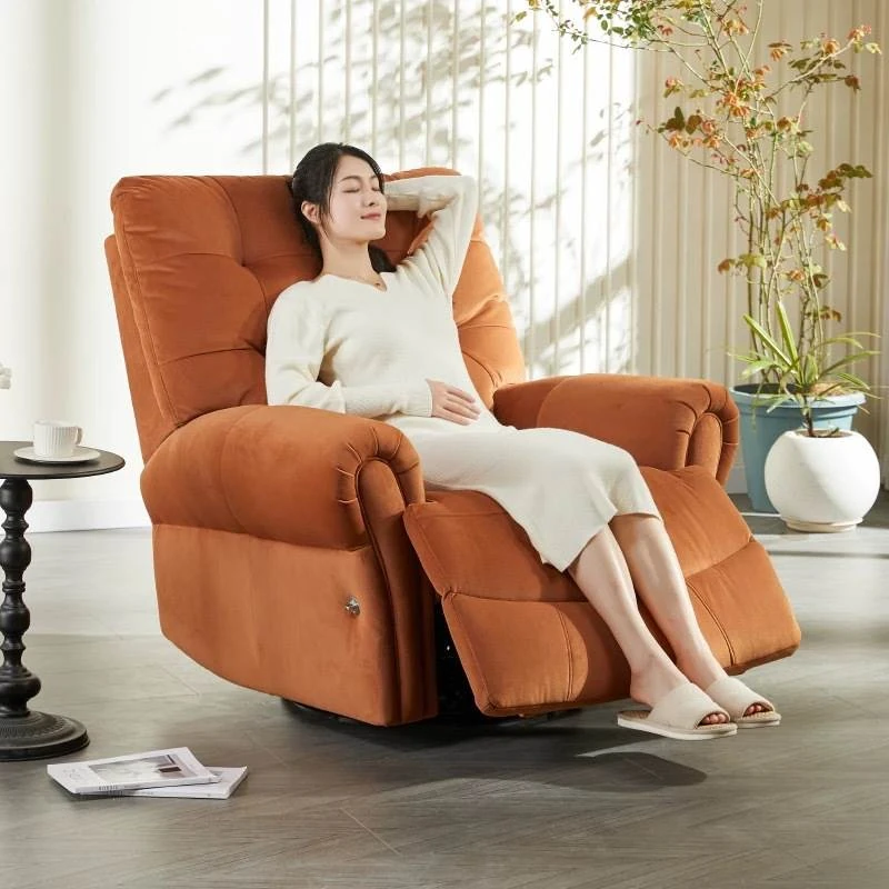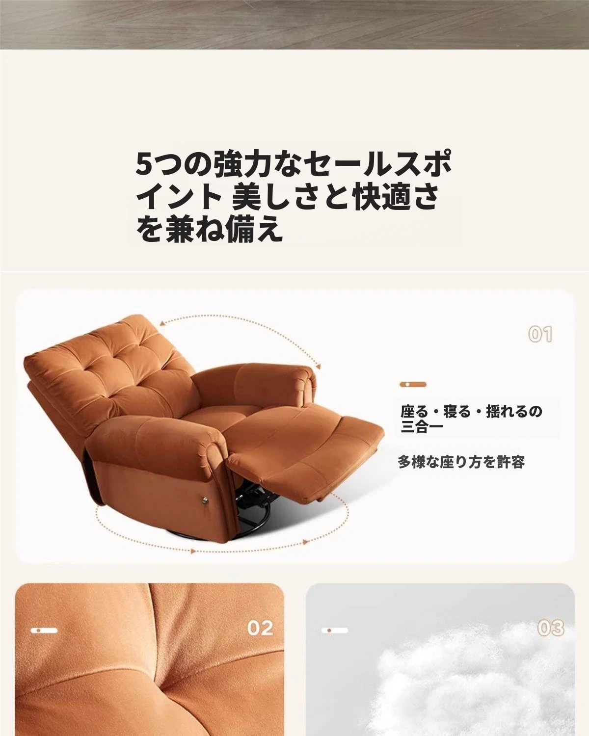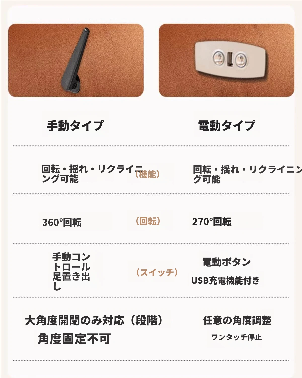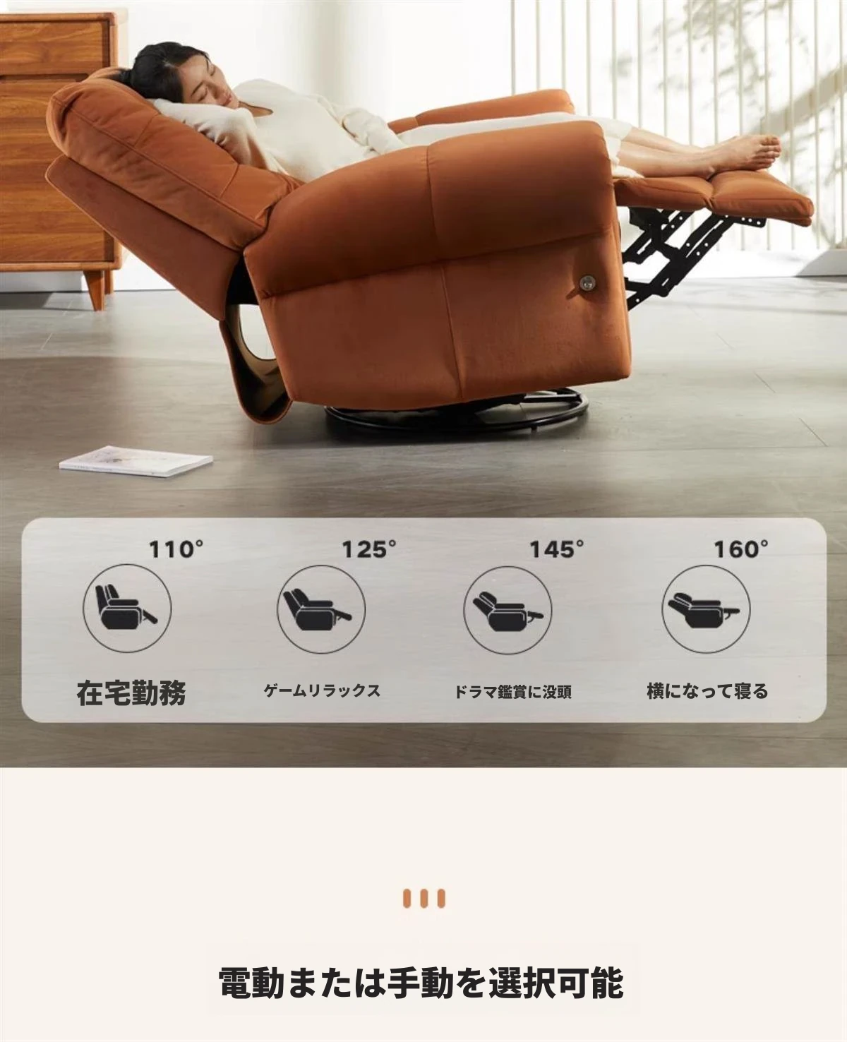 キャラメル色-ダヴベルベット、電動リクライニング+ロッキング+USB充電