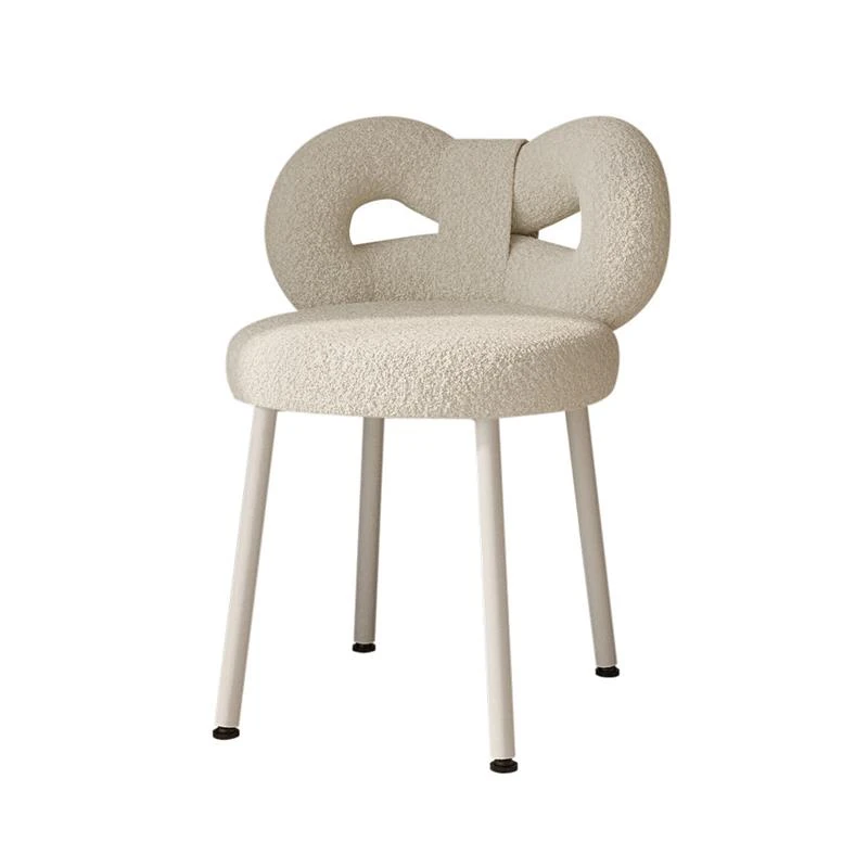 トレンドのクリーム風デザイン!モダンでシンプルなバタフライリボン付き、ラグジュアリーなラムファーの化粧椅子。寝室にぴったりのスタイリッシュなドレッサー用スツール!