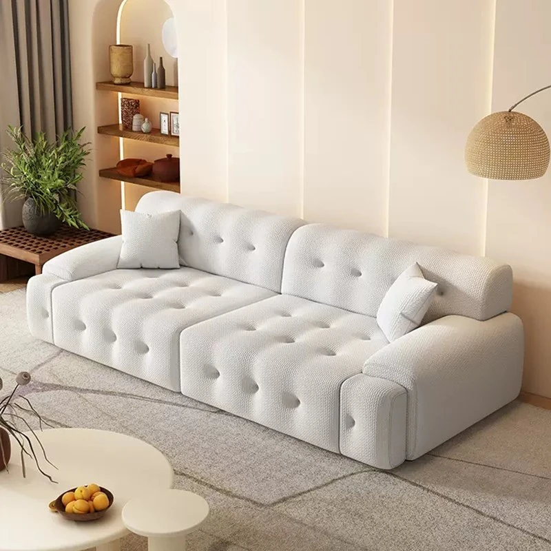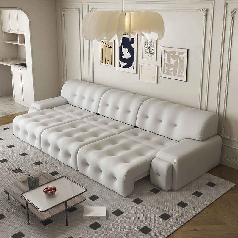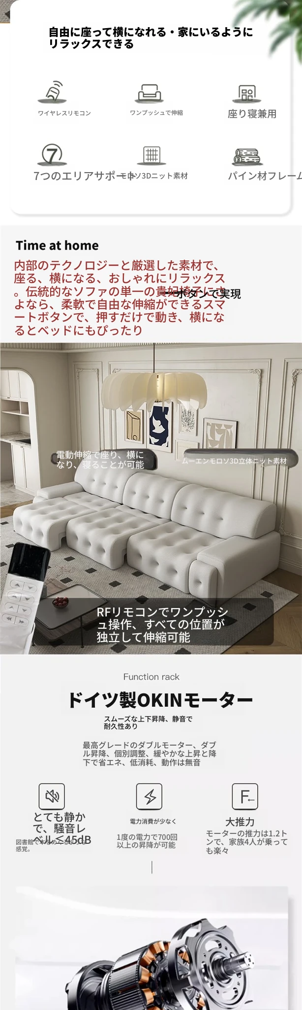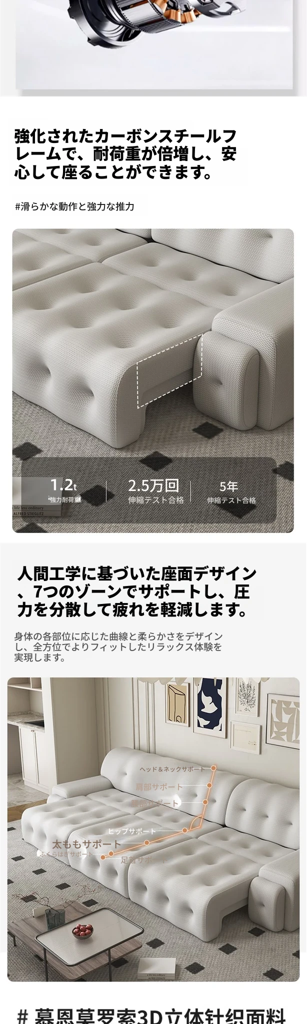 大人気!クリーミー風ローチカウチソファ - 機能的な電動式、モダンでシンプルなデザイン、小スペースにも最適。伸縮可能なファブリックで、リビングルームをスタイリッシュに演出!