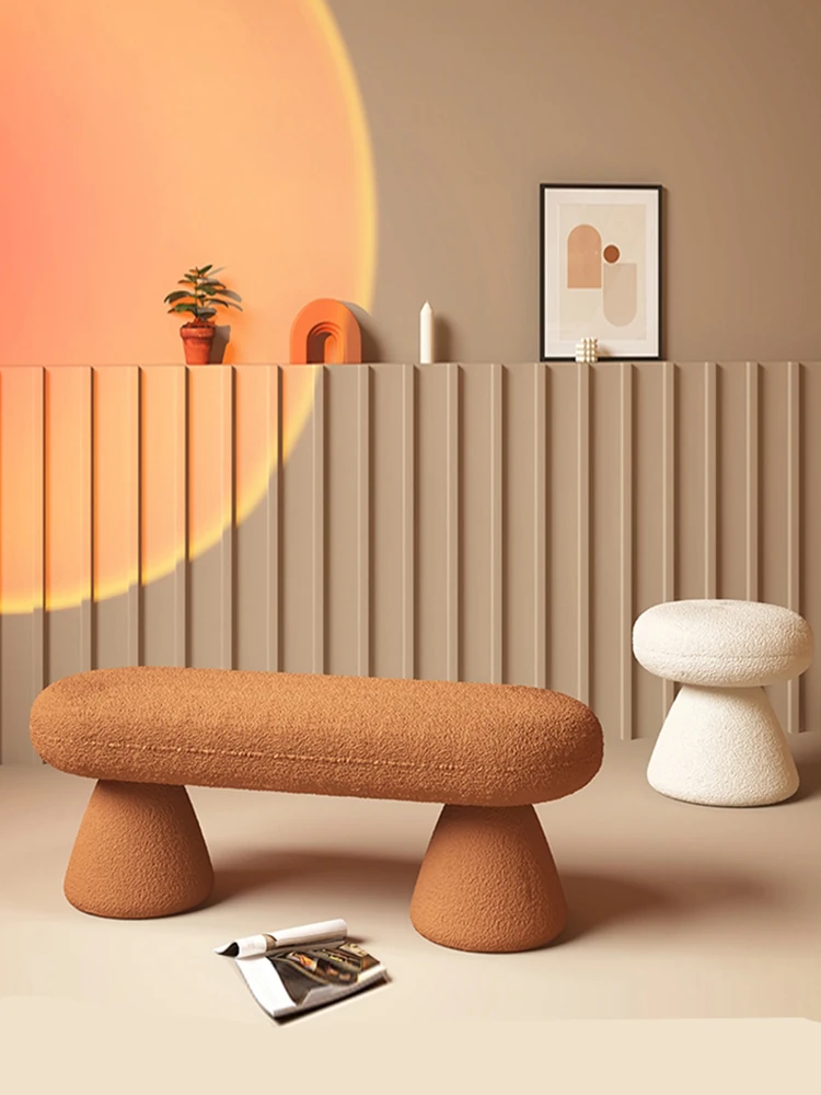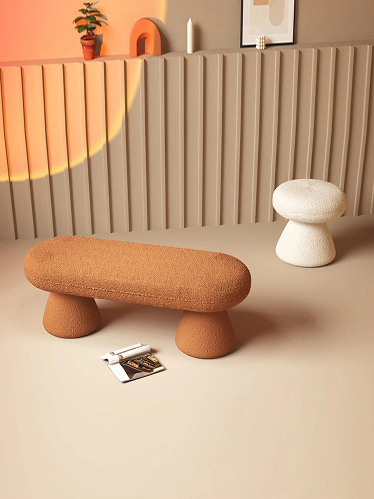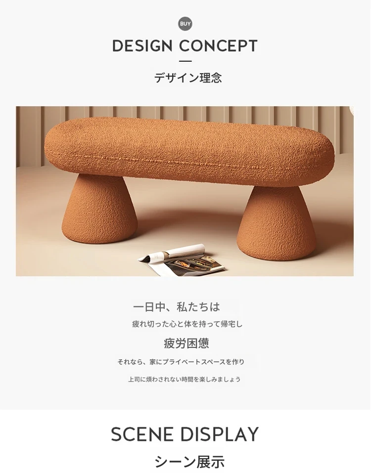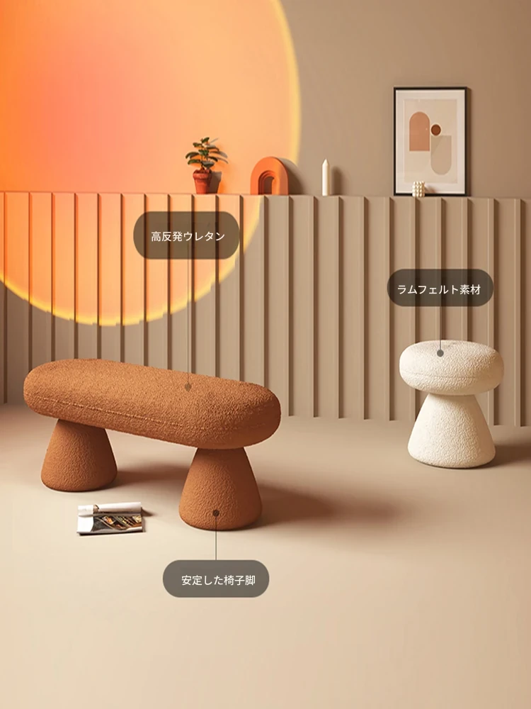 おしゃれなファッションショップの人気ソファベンチ!ふわふわのラムフリースで、メイクやおしゃれに最適。玄関やリビングで靴を履き替えるのにも便利な長椅子型。あなたの空間にぴったりのアイテムです!