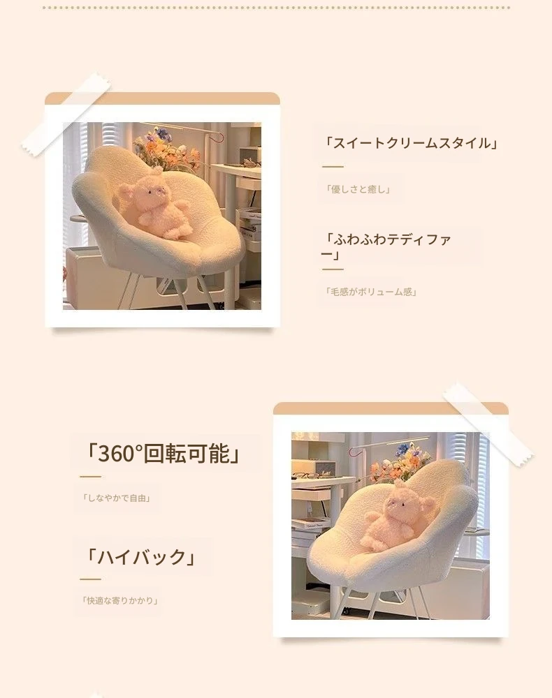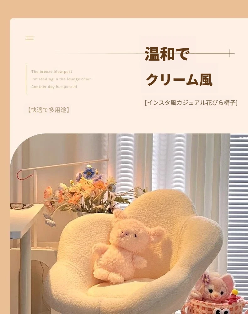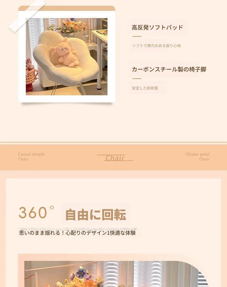 人気の花びら型メイクアップチェア!洗練されたデザインで、クリーム風の美しいカラーが魅力的。自宅の寝室やネイルサロンにぴったりのシンプルでおしゃれな背もたれ椅子。快適さとスタイルを両立したアイテムです!