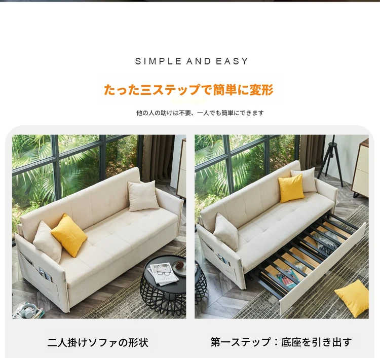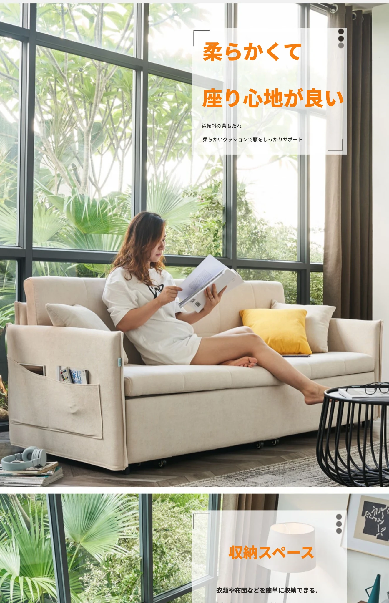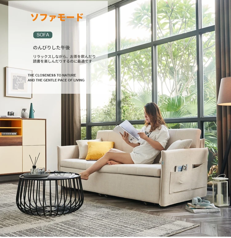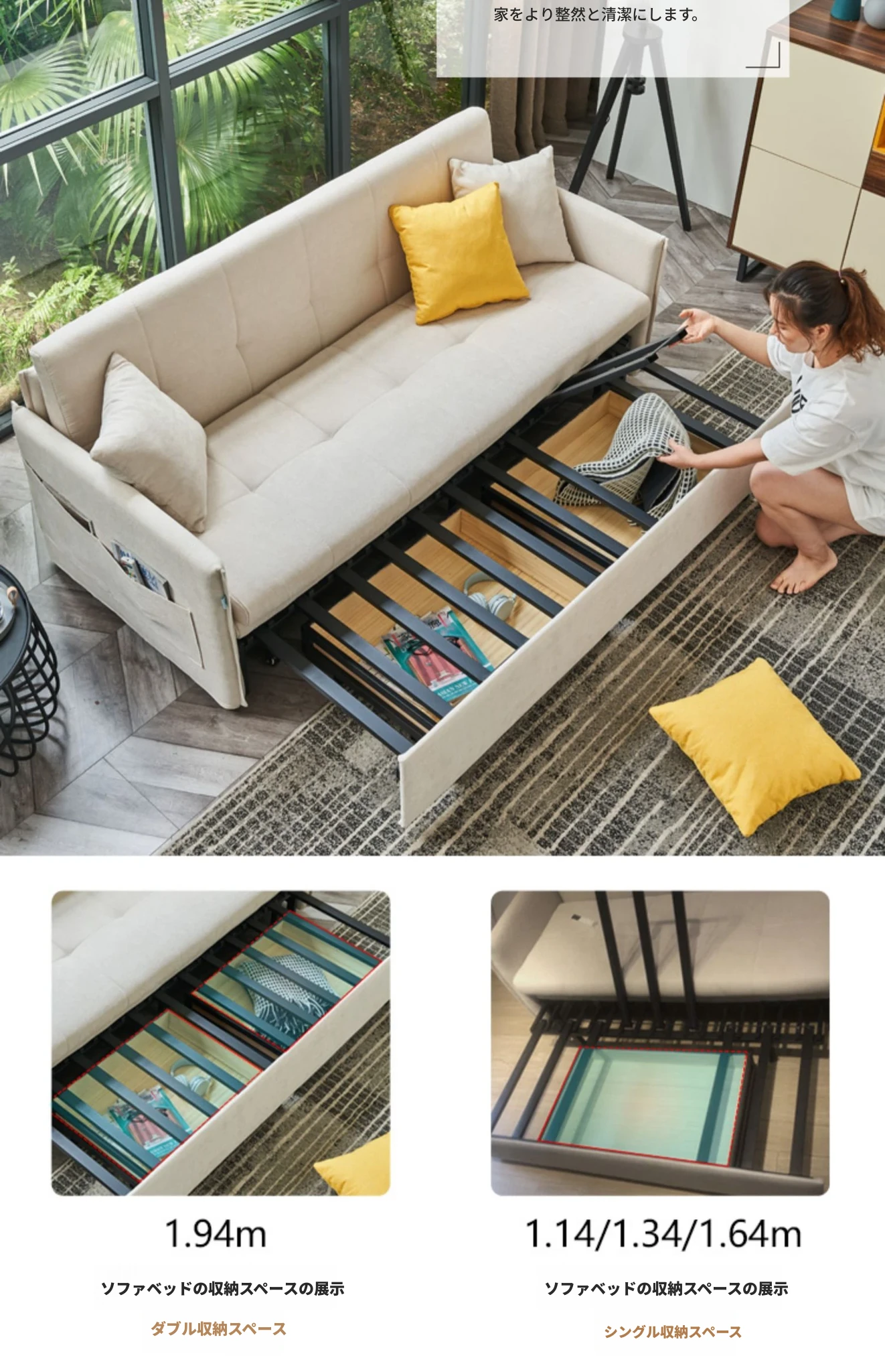 折りたたみソファベッド|2WAY機能性|リビングにぴったりのコンパクトサイズ|収納付き|おしゃれで経済的な北欧モダンデザイン|快適なダブルサイズで、友人や家族と一緒にリラックスできる空間を演出!