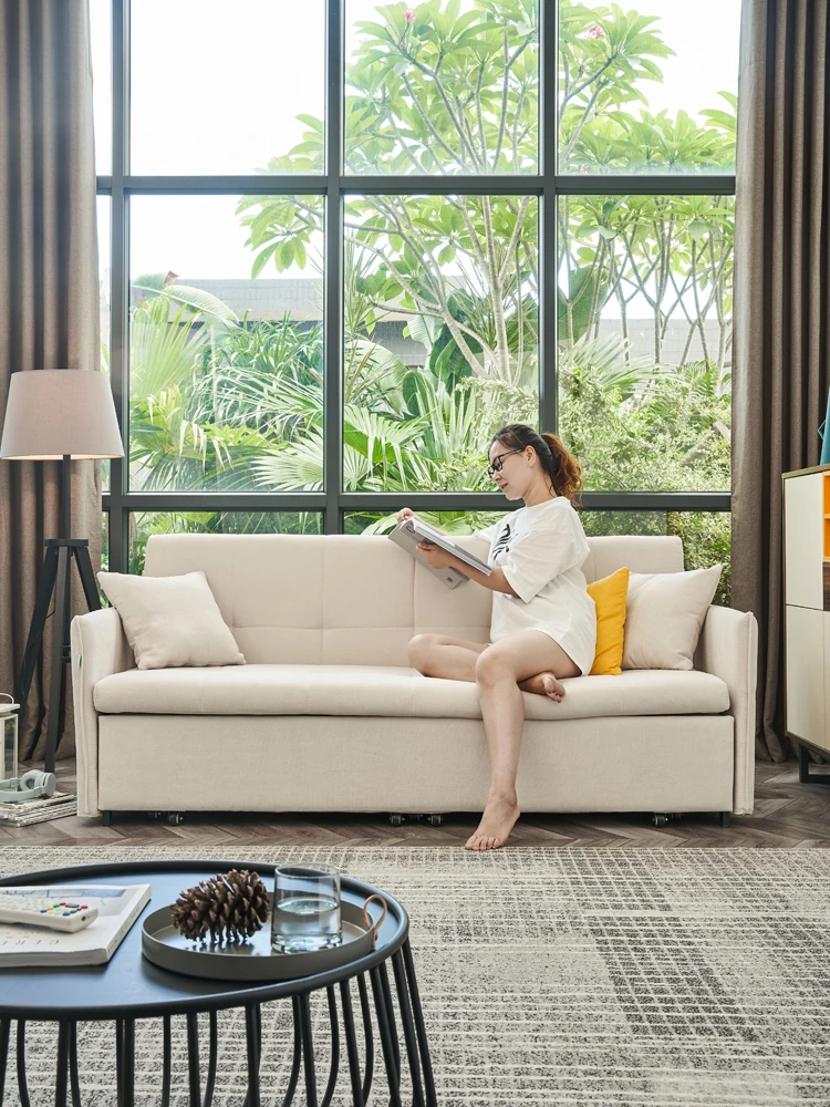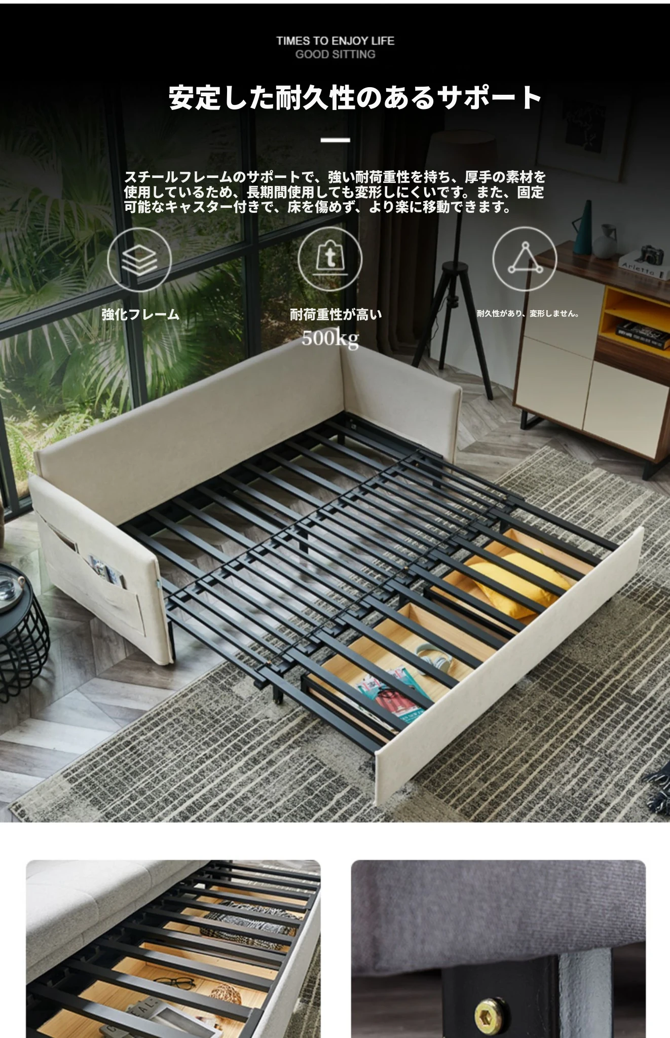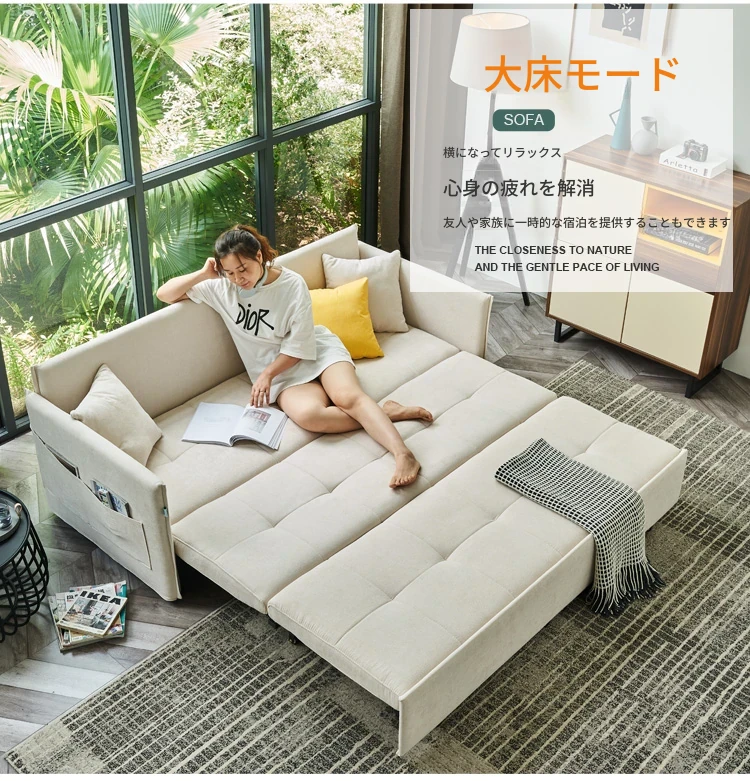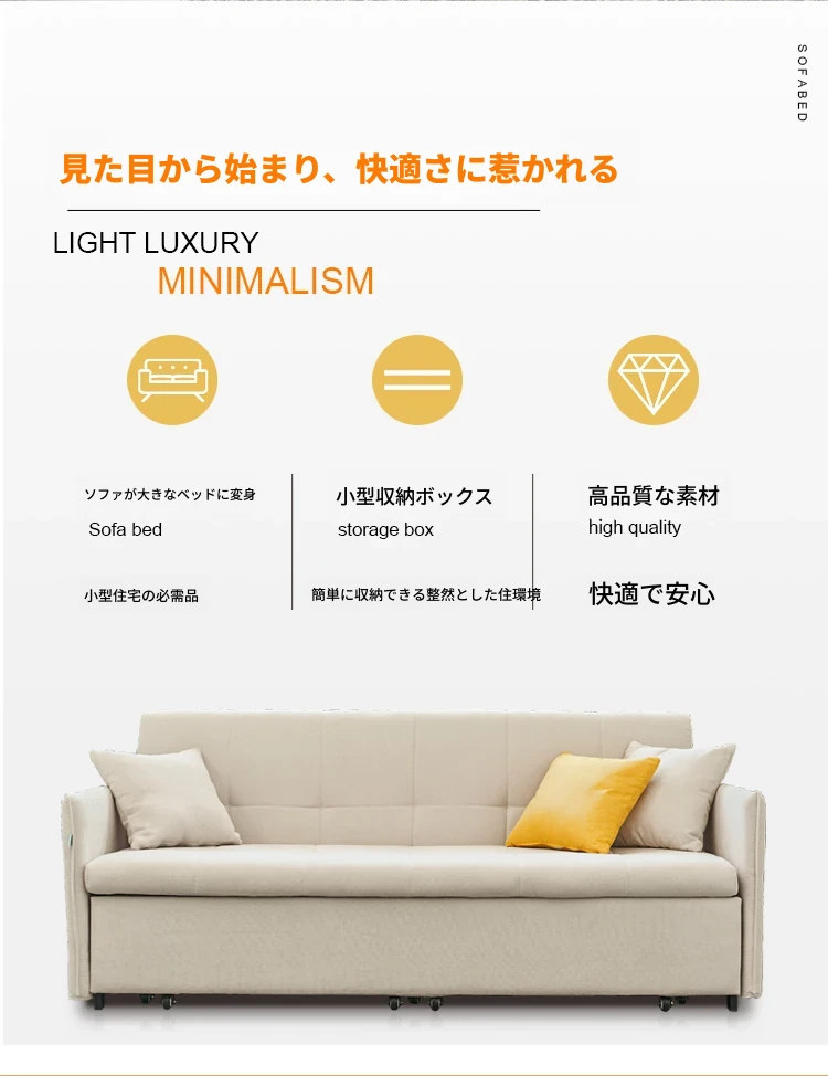 折りたたみソファベッド|2WAY機能性|リビングにぴったりのコンパクトサイズ|収納付き|おしゃれで経済的な北欧モダンデザイン|快適なダブルサイズで、友人や家族と一緒にリラックスできる空間を演出!