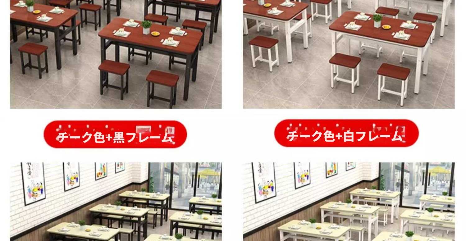 飲食店専用!長方形テーブル&チェアセット - 快適な朝食やランチに最適な商用テーブル、カフェや麺屋にもぴったり!
