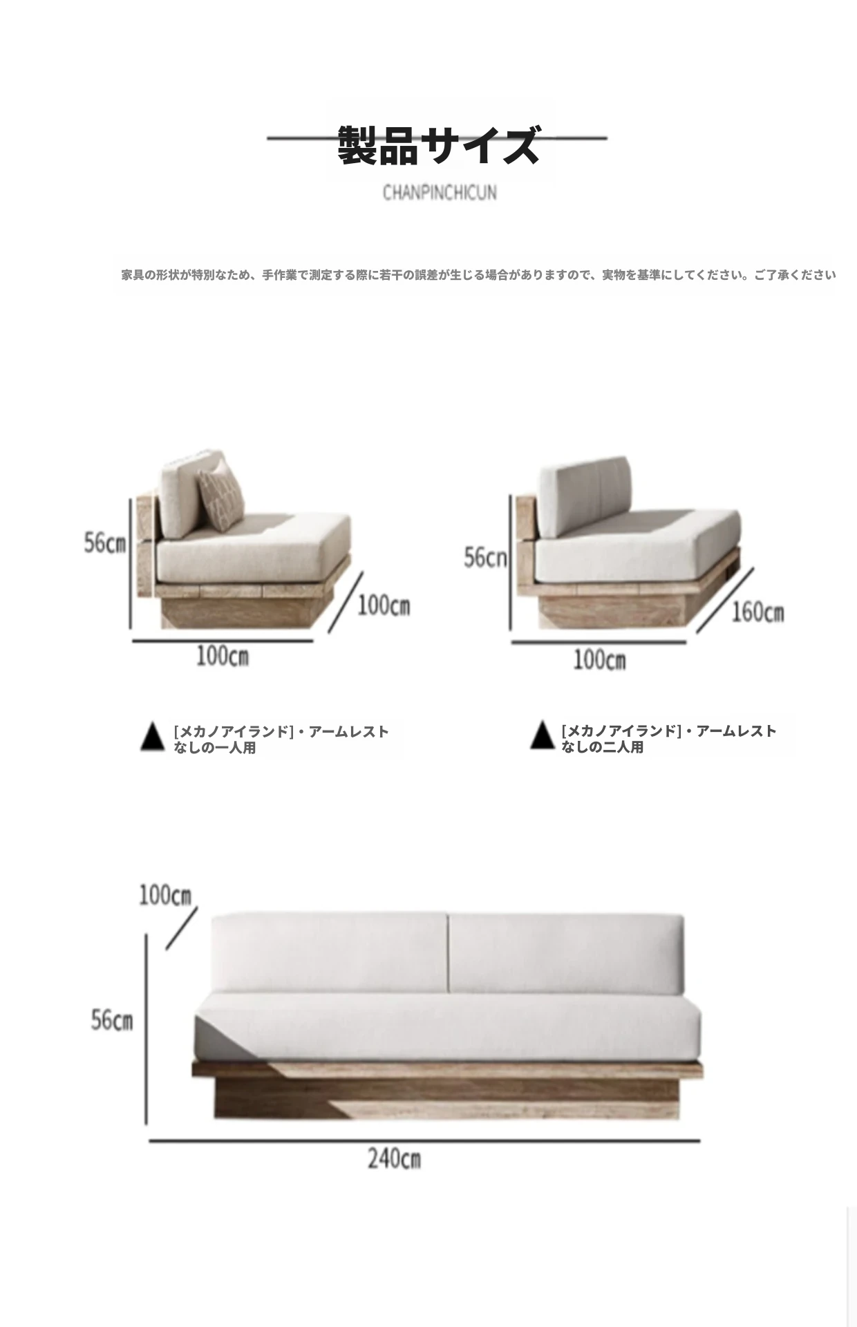 三人用アームレストなし 240*100*56