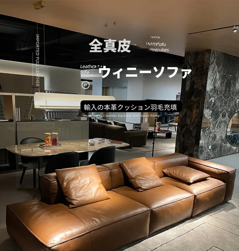 ウィニーソファ イタリアンミニマルデザイン 本革&スエード仕上げ 四人掛けフラットソファ - 贅沢な青皮仕様で、シンプルながらも洗練されたスタイルを実現!快適さと美しさを兼ね備えた理想のリビング空間をお楽しみください。