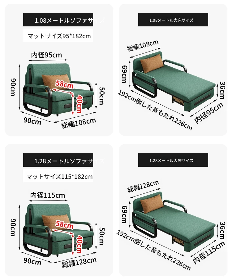 1.08メートル【5cmスポンジ+2cmココナッツファイバー】収納なし 色はお問い合わせください