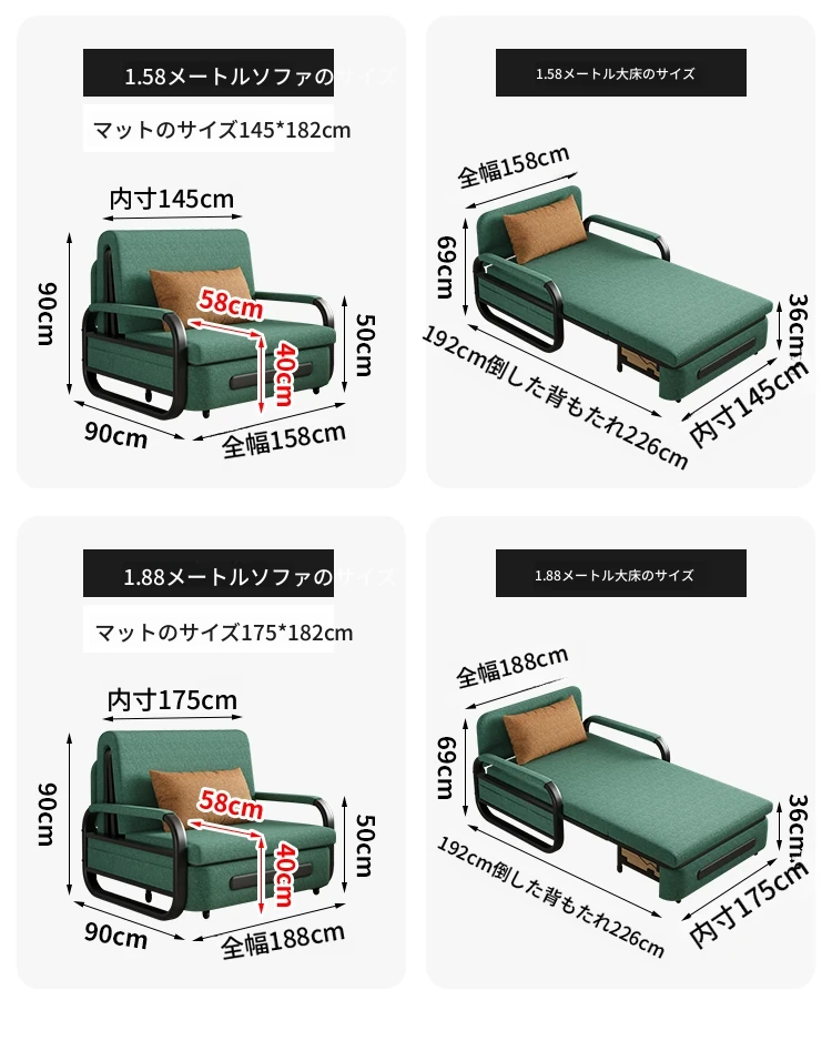 1.58メートル【7cm高密度スポンジ】収納あり 色はお問い合わせください